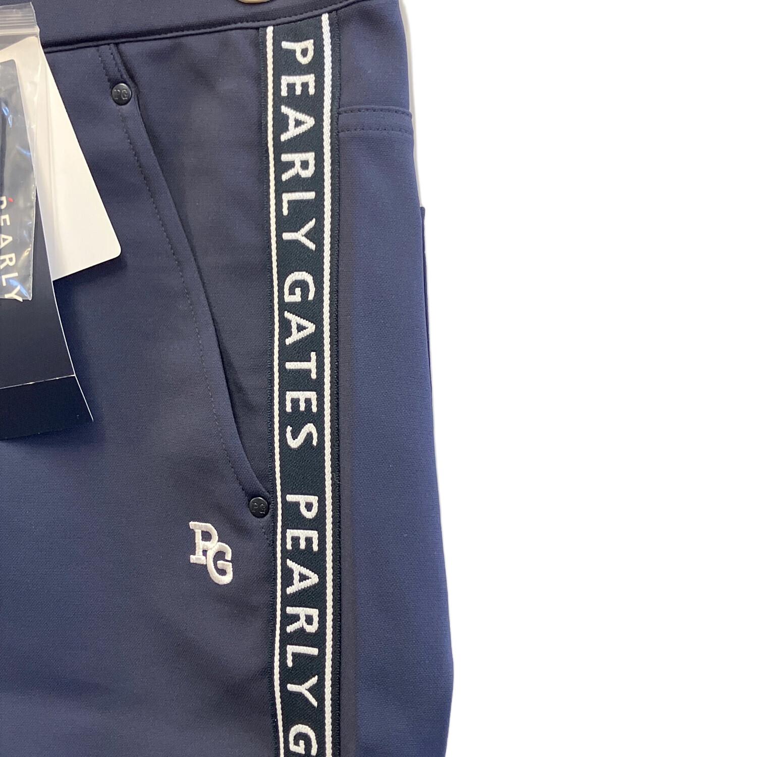 PEARLY GATES (パーリーゲイツ) ロゴジャガード サイドライン ポリジャージー テーパード パンツ メンズ SIZE 6 ネイビー
