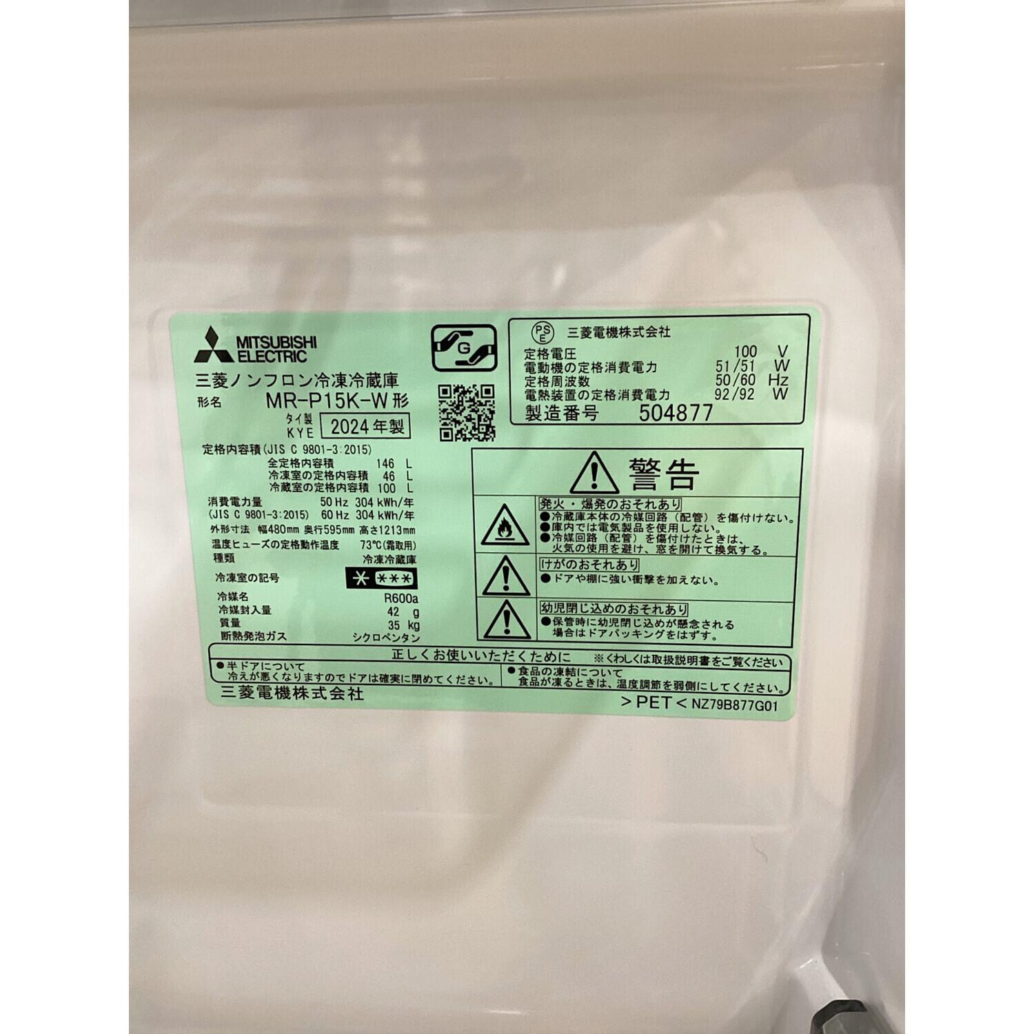 MITSUBISHI (ミツビシ) 2ドア冷蔵庫 MR-P15K-W 2024年製 146L