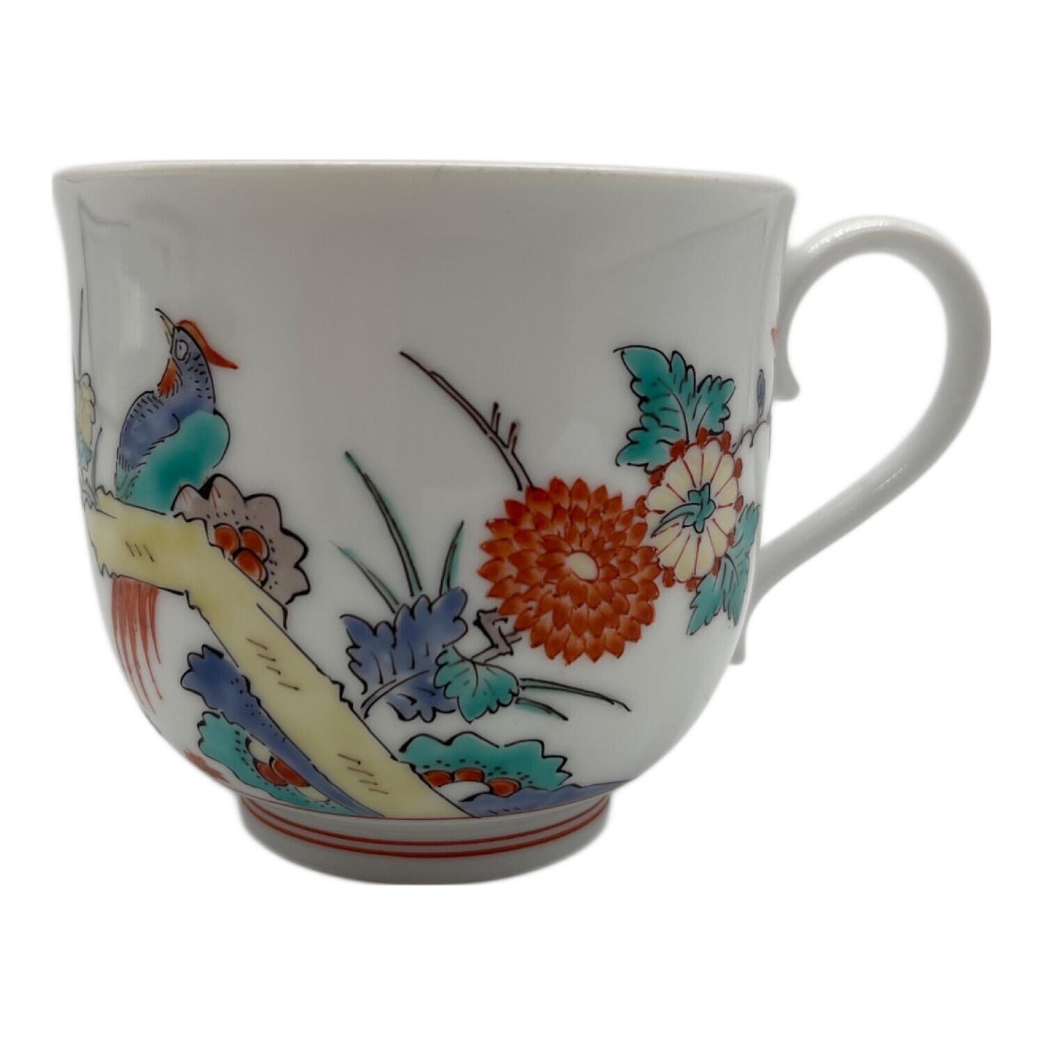十四代柿右衛門 (ジュウヨンダイカキエモン) カップ&ソーサー 錦菊鳥文
