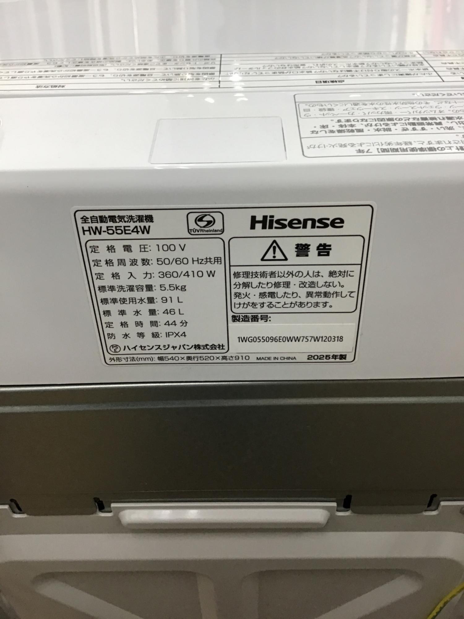 Hisense (ハイセンス) 全自動洗濯機 HW-55E4W 2025年製