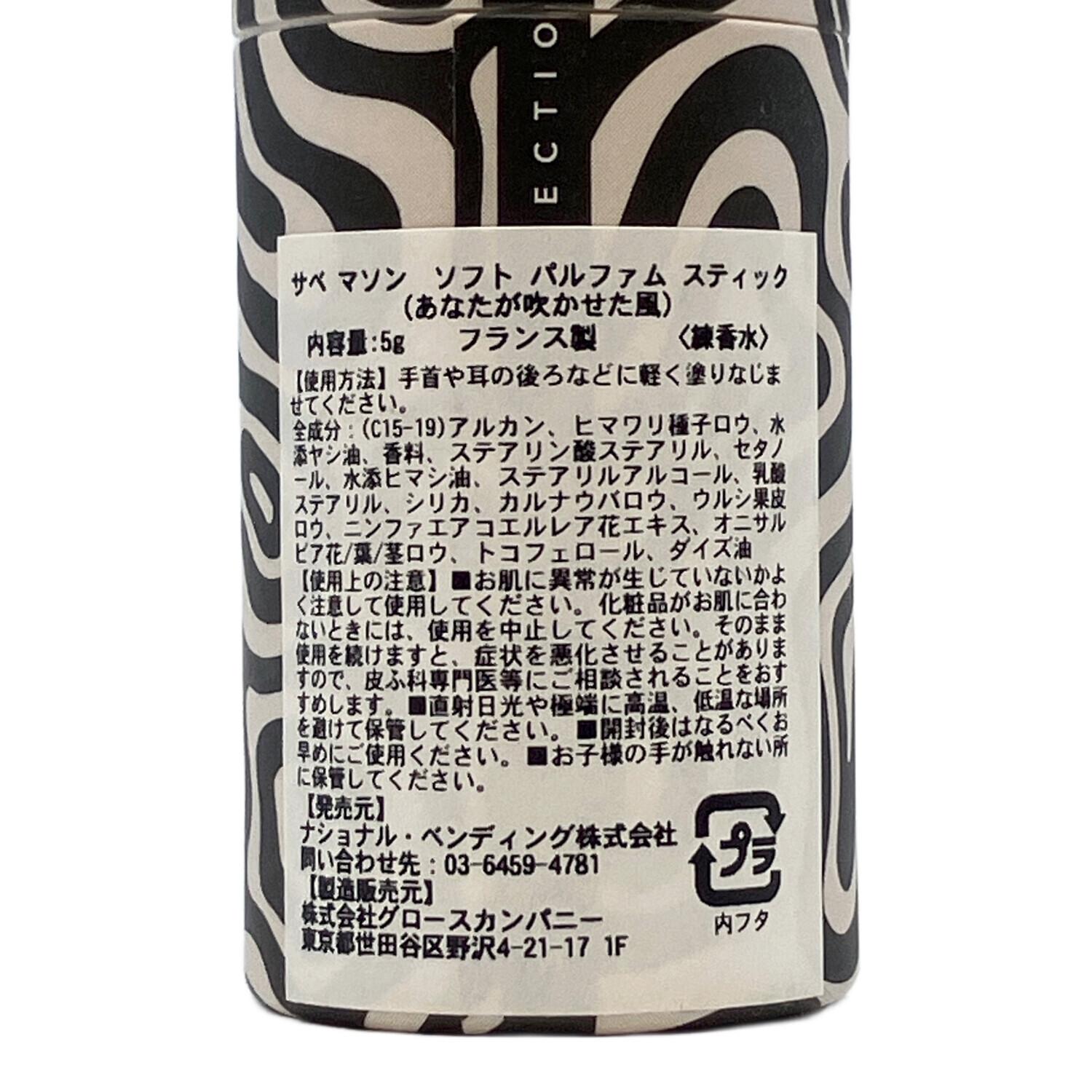 SABÉ MASSON (サベ マソン) ソフトパルファムスティック あなたが吹かせた風 5g 練り香水