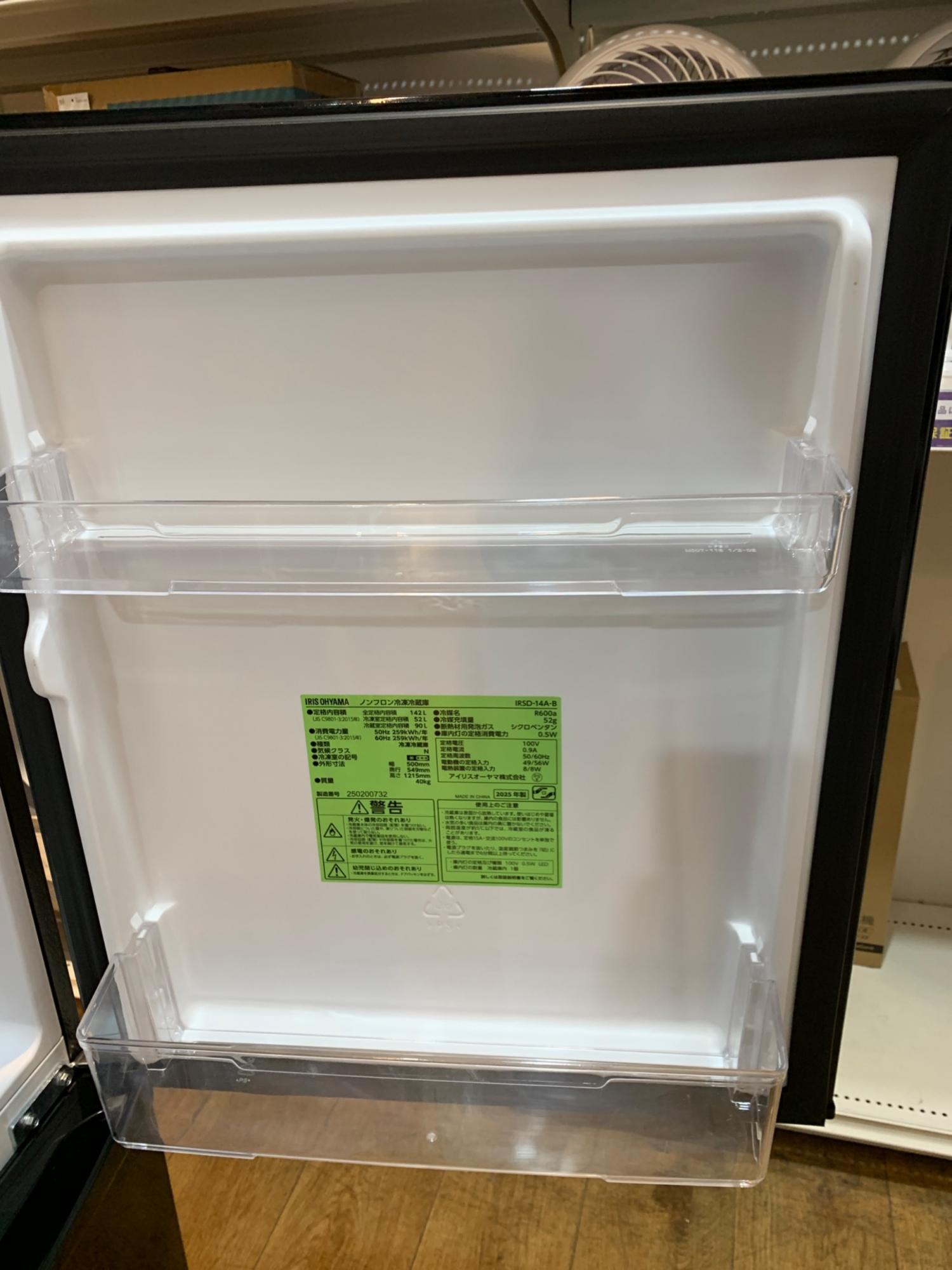 IRIS OHYAMA (アイリスオーヤマ) 2ドア冷蔵庫 IRSD-14A-B 2025年製 142L