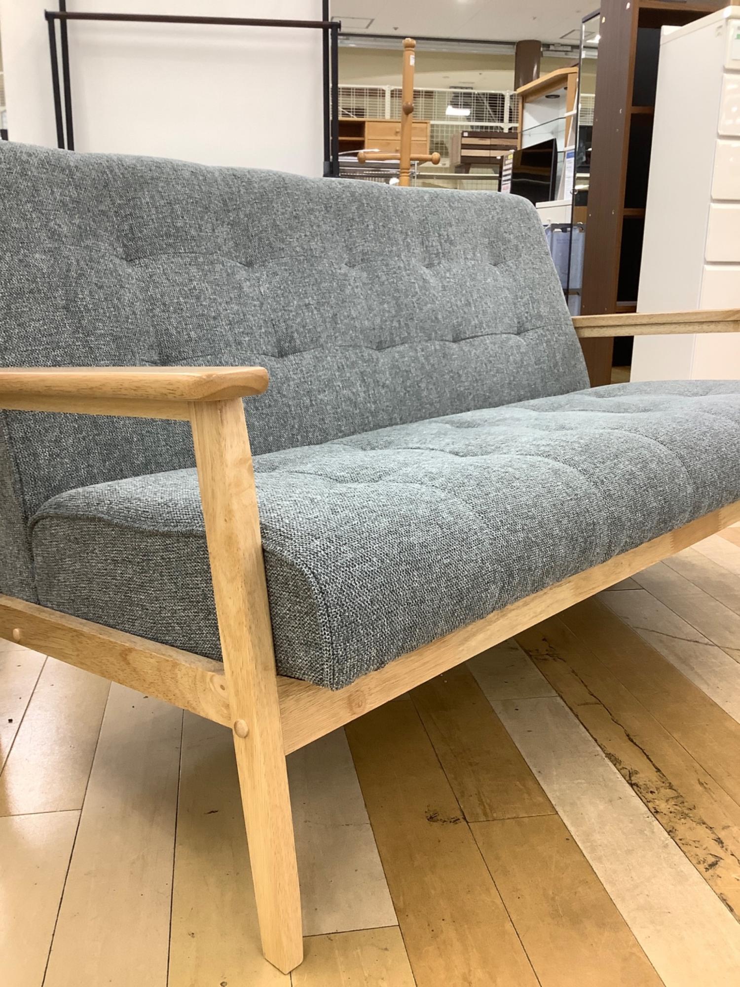 2人掛けソファー ナチュラル×グレー 12 ファブリック