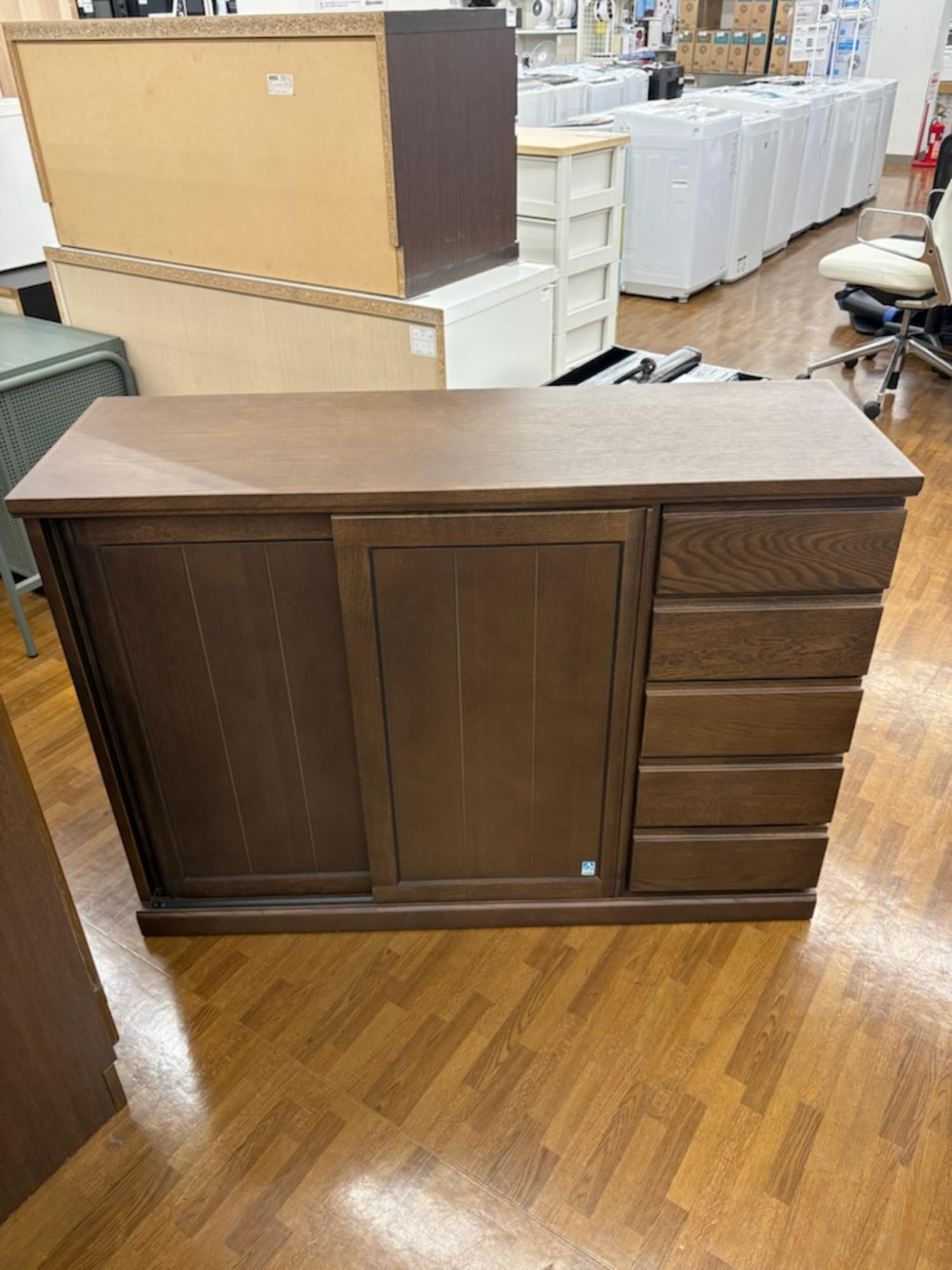 大雪木工(旭川家具) サイドボード ブラウン 国産家具 板戸観音開き 107258151 フィガロ120