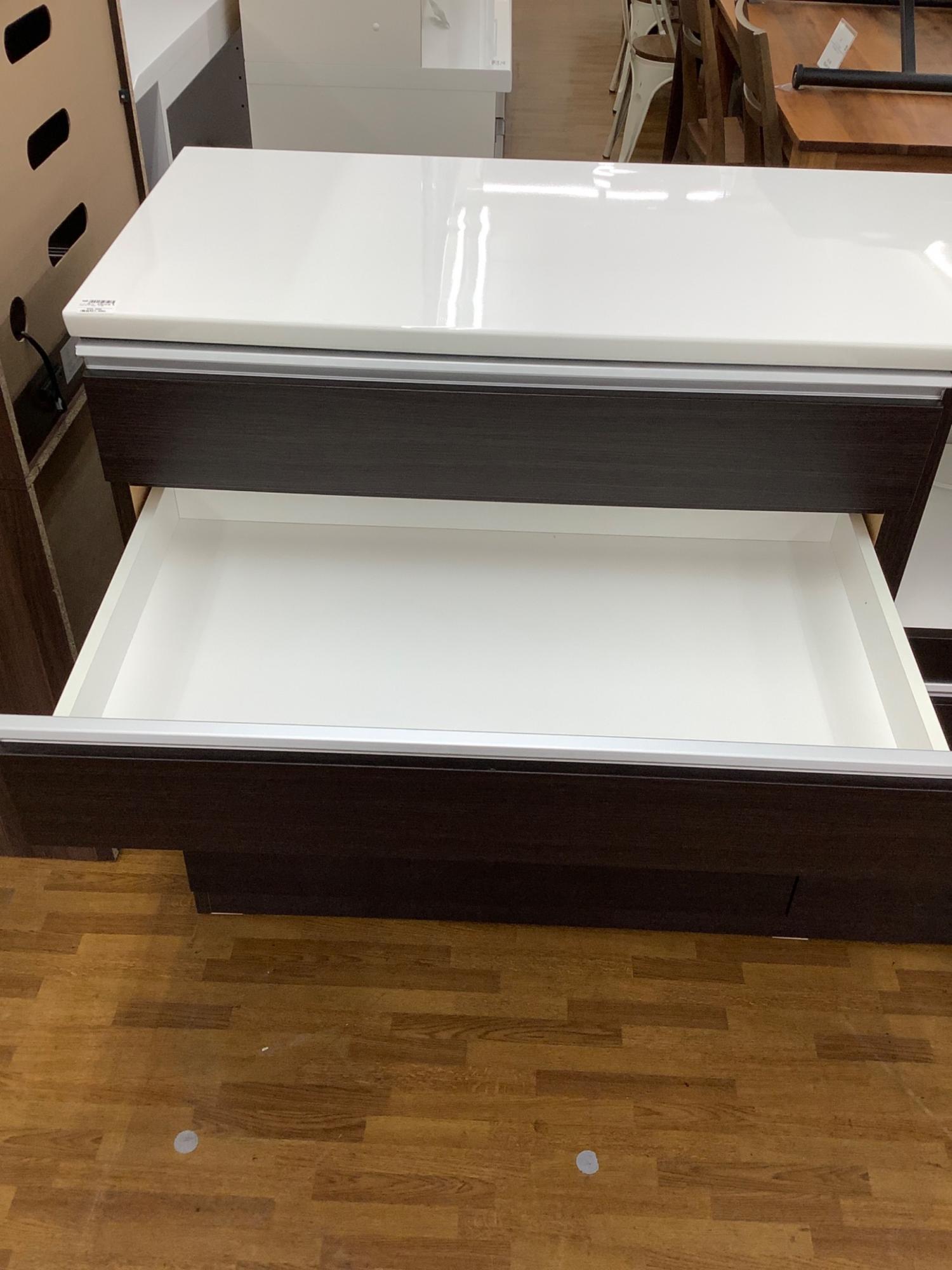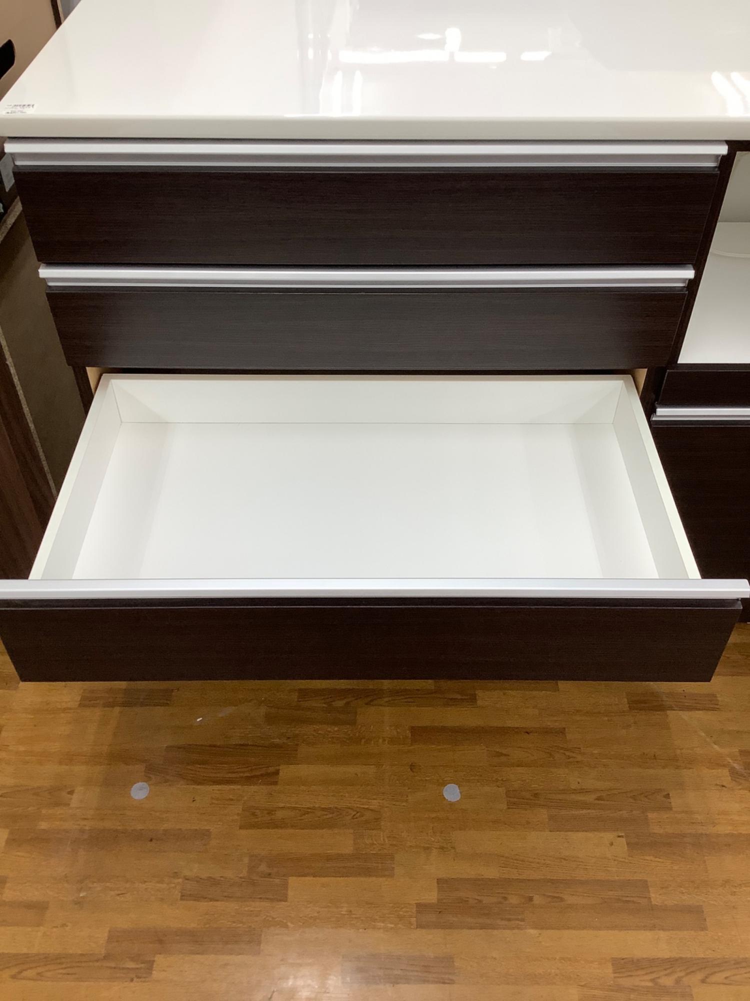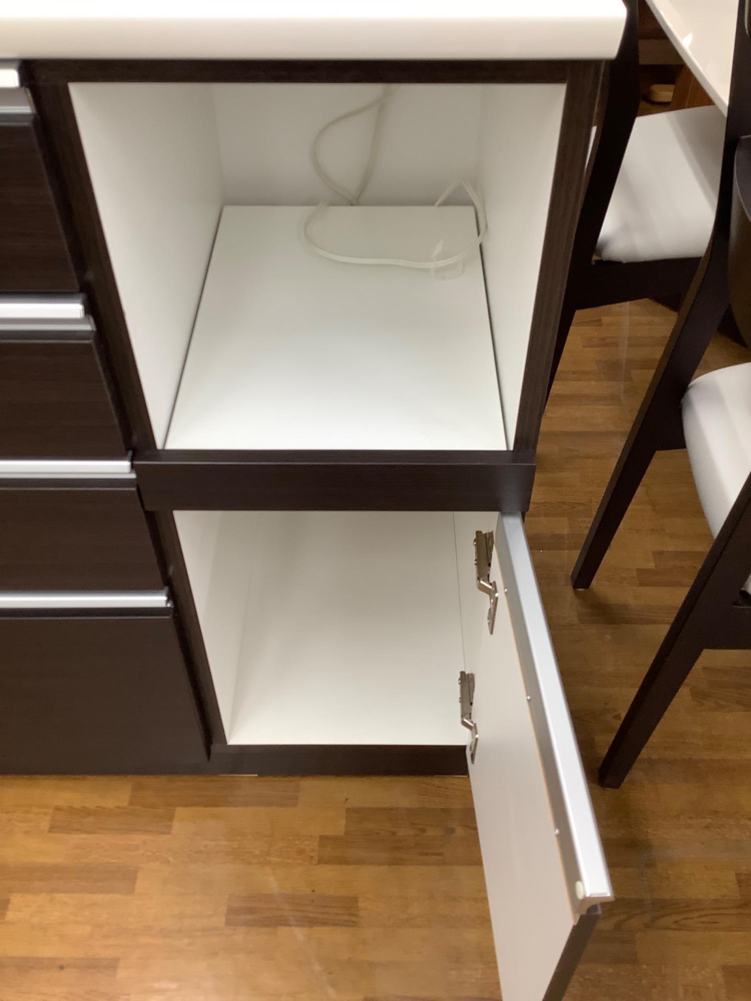 キッチンカウンター ホワイト×ブラウン 引出付き