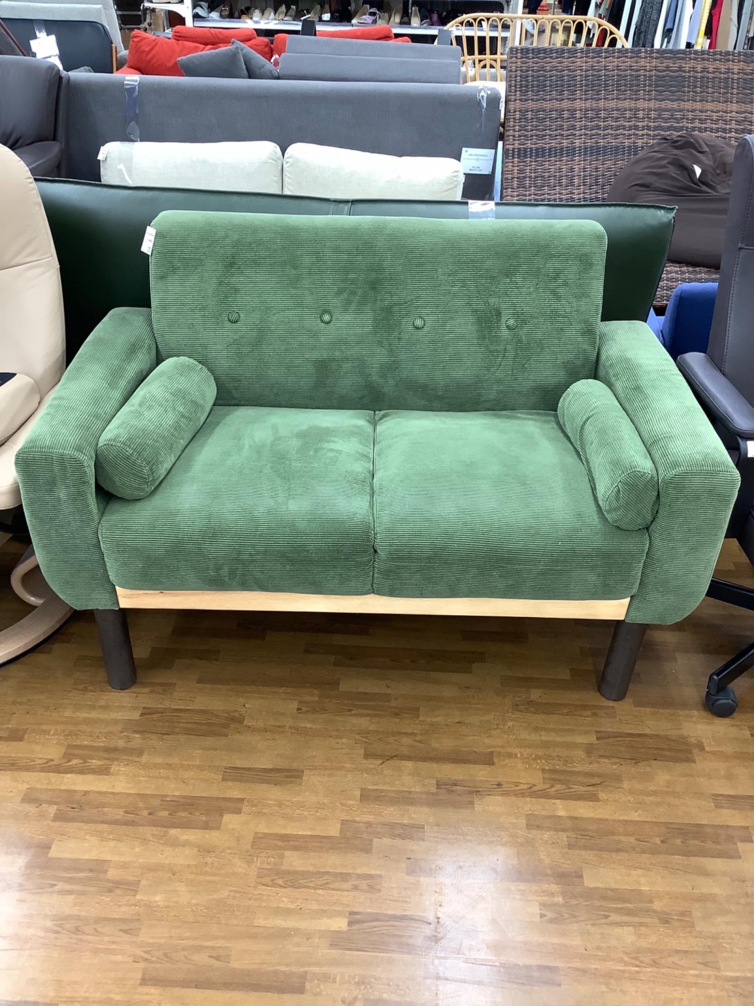 2人掛けソファー グリーン 天然木 /コーデュロイ