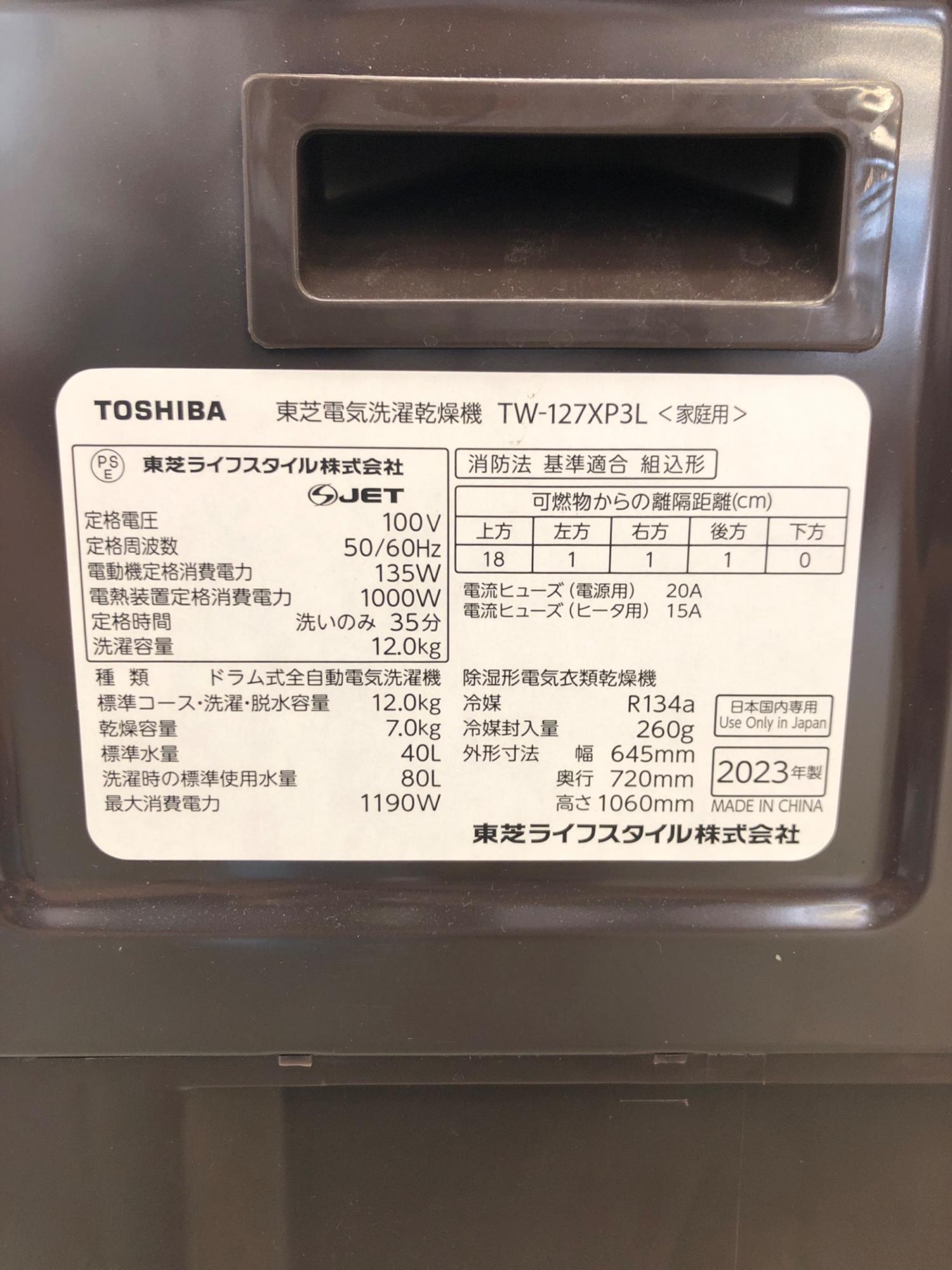 TOSHIBA (トウシバ) ドラム式洗濯乾燥機 12.0kg TW-127XP3R 2023年製