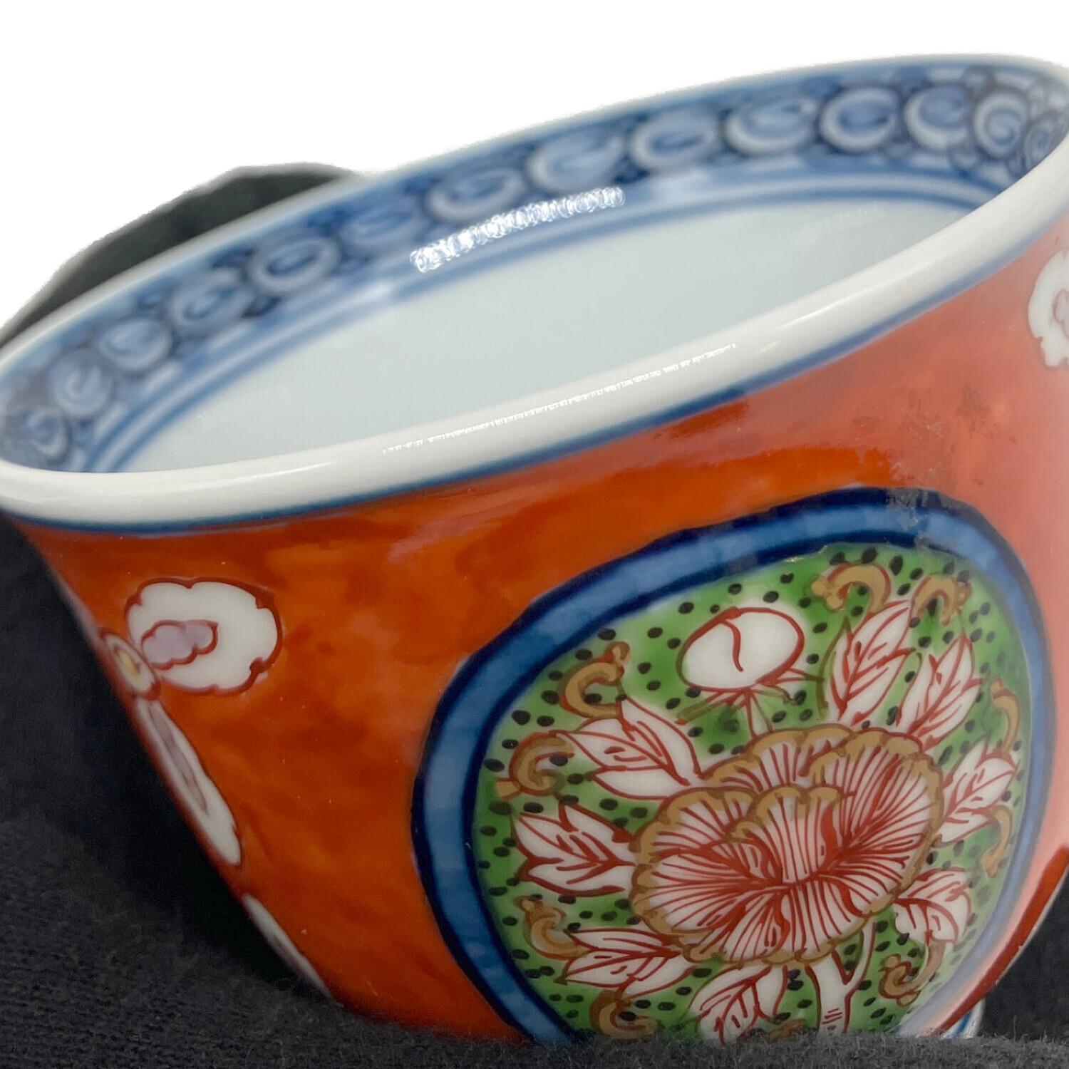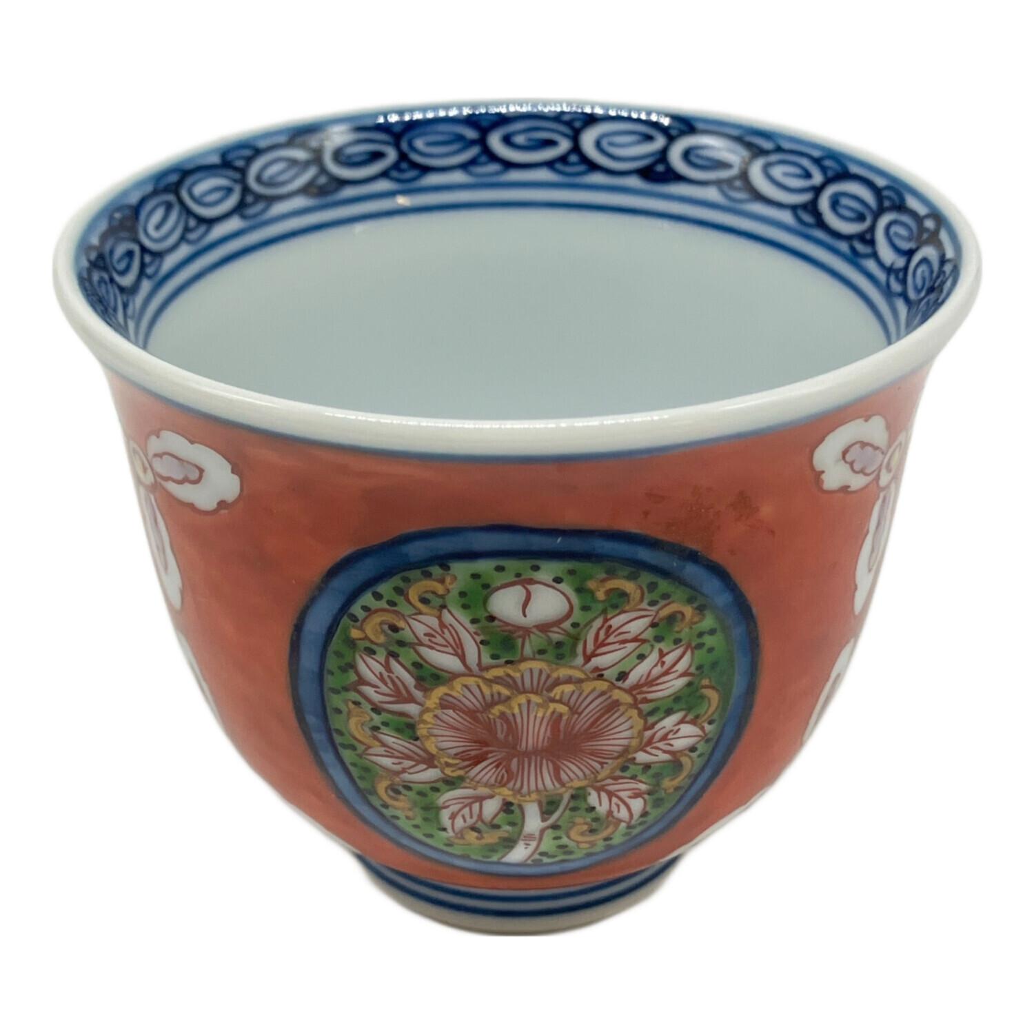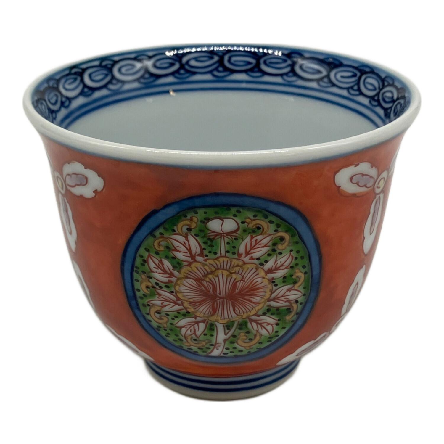 源右衛門窯 (ゲンエモンガマ) 湯呑み 赤花紋様