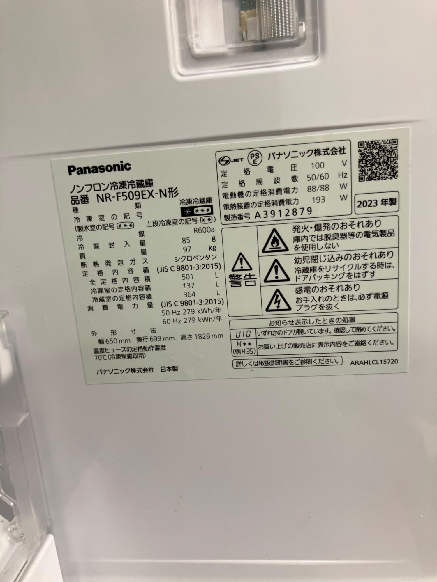 Panasonic (パナソニック) 6ドア冷蔵庫 NR-F509EX-N 2023年製 339 501L