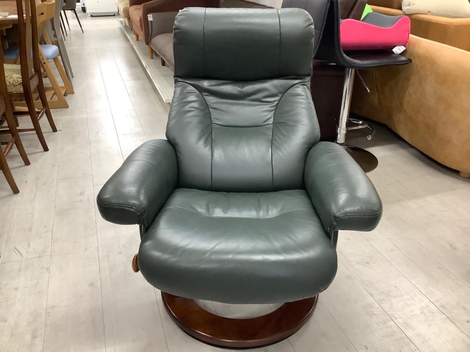 マナベインテリアハーツ リクライニングチェアー オットマン付 グリーン