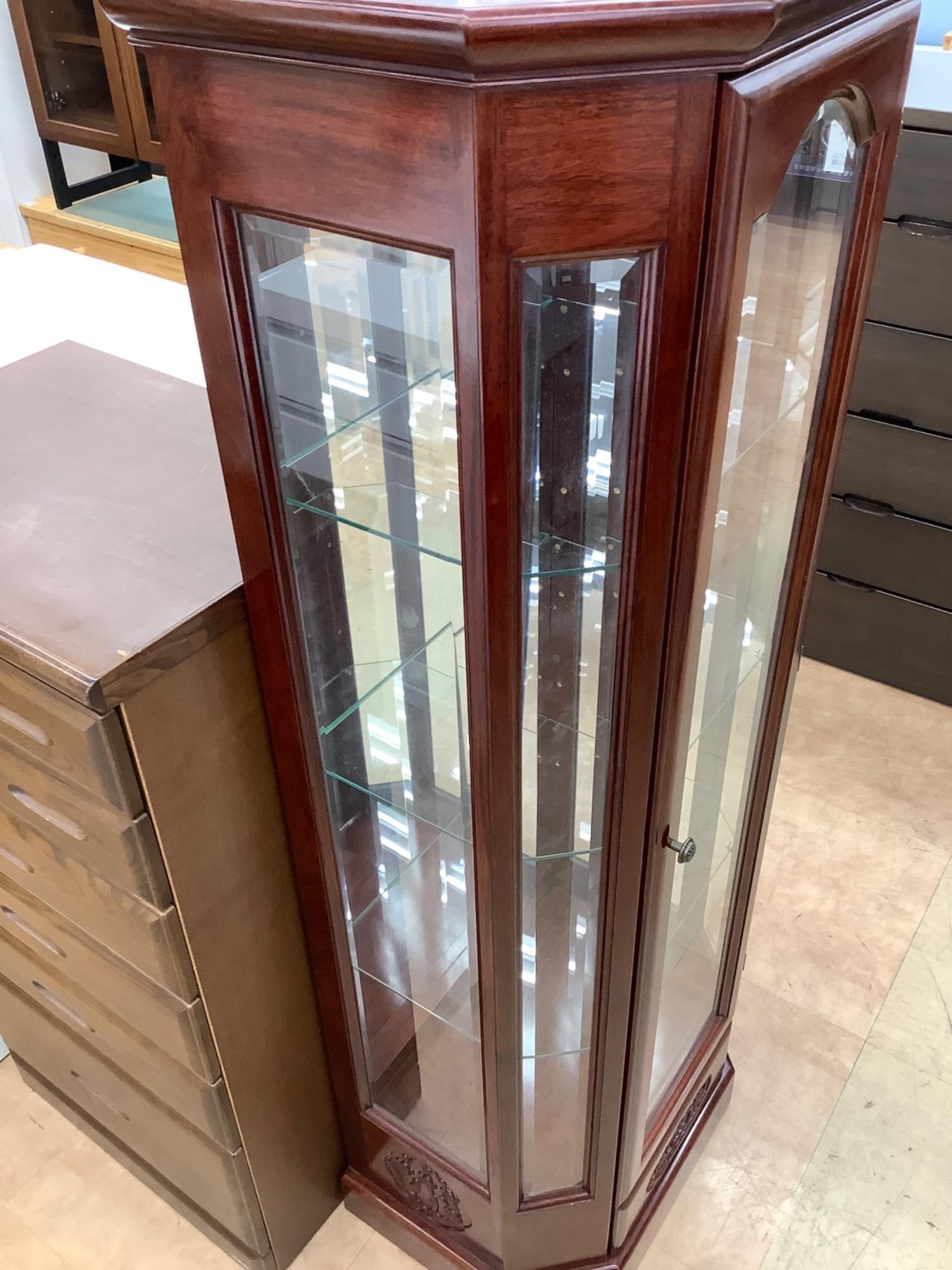 アンティークガラスショーケース ブラウン ※動作不良 1枚扉 ガラス製×木製