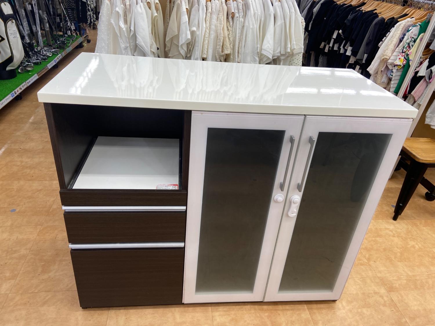 キッチンカウンター ホワイト×ブラウン 2枚扉 引出付き