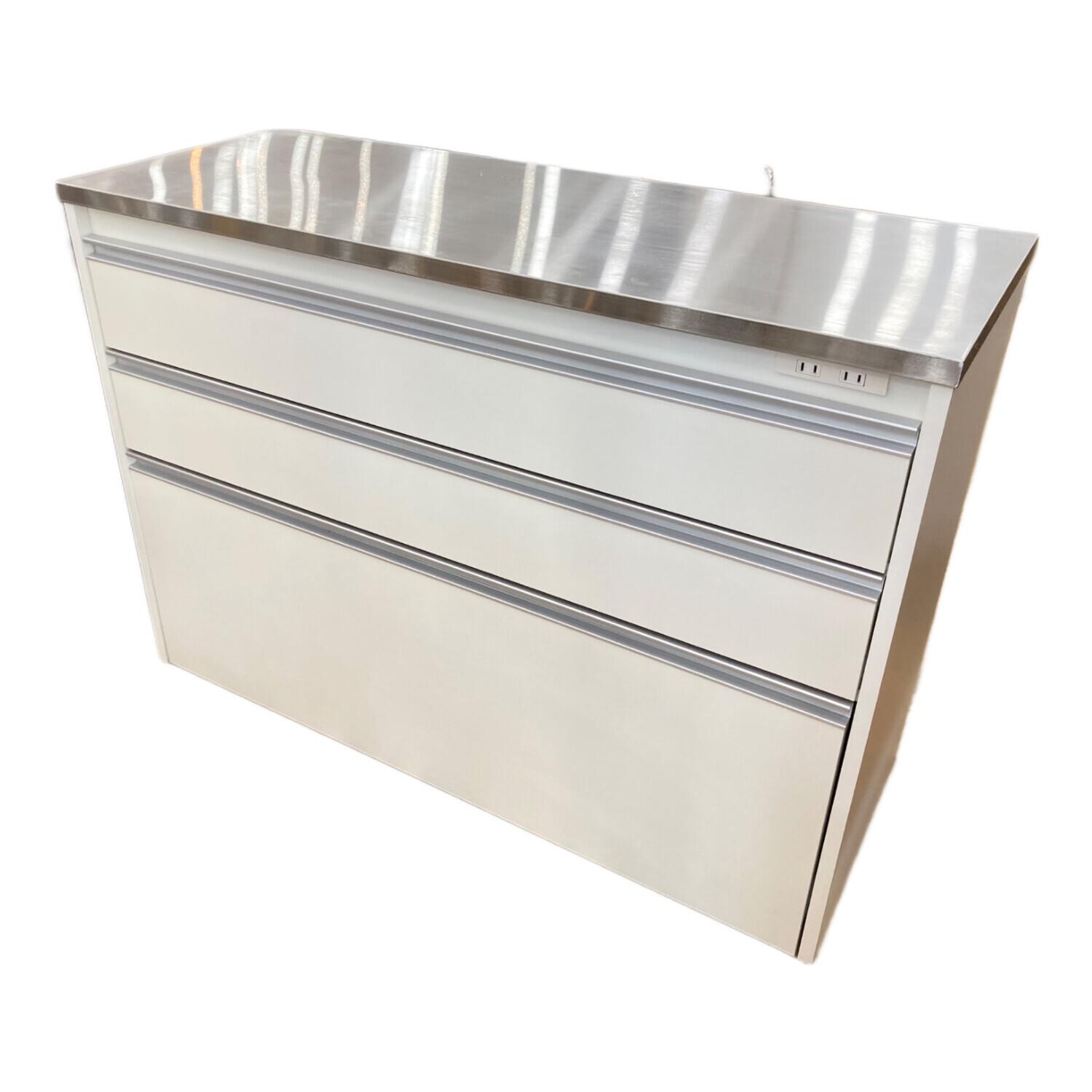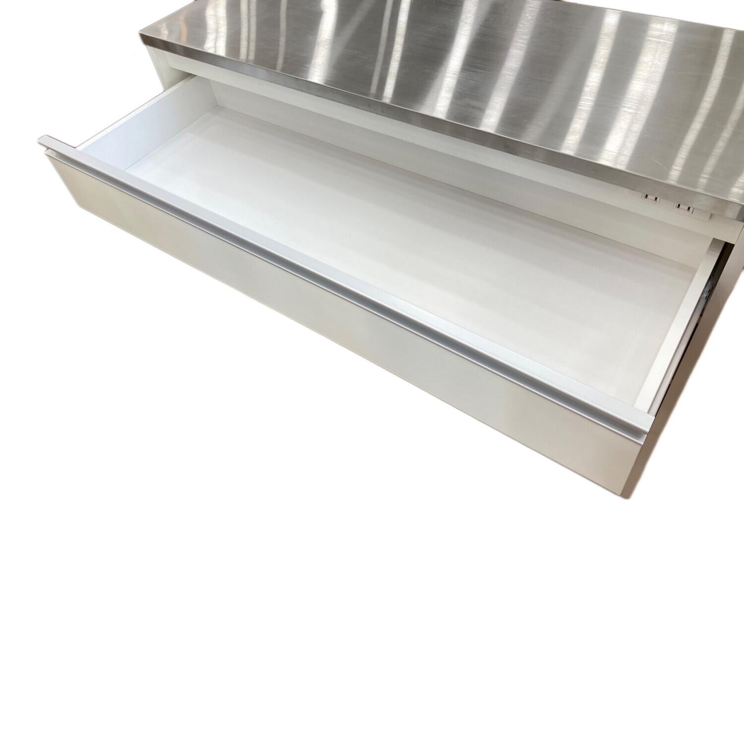 キッチンカウンター ホワイト 145 ステンレストップ 引出③ 幅:120㎝
