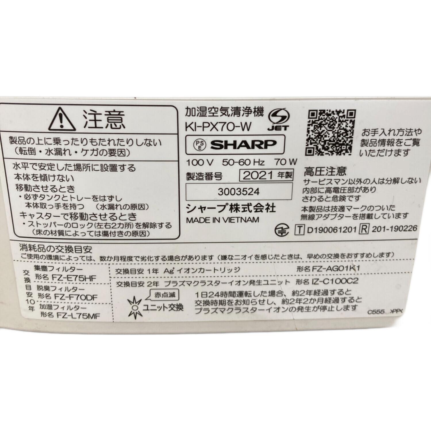 SHARP (シャープ) 加湿空気清浄機 KI-PX70-W 2021年製