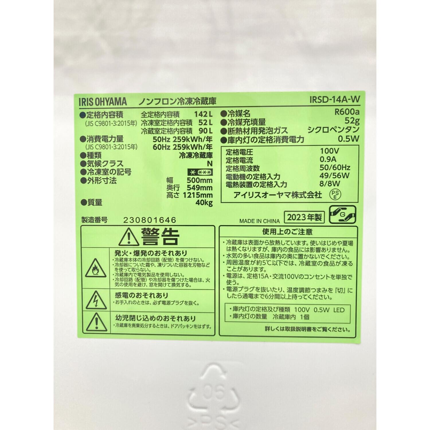IRIS OHYAMA (アイリスオーヤマ) 2ドア冷蔵庫 IRSD-14A-W 2023年製 142L
