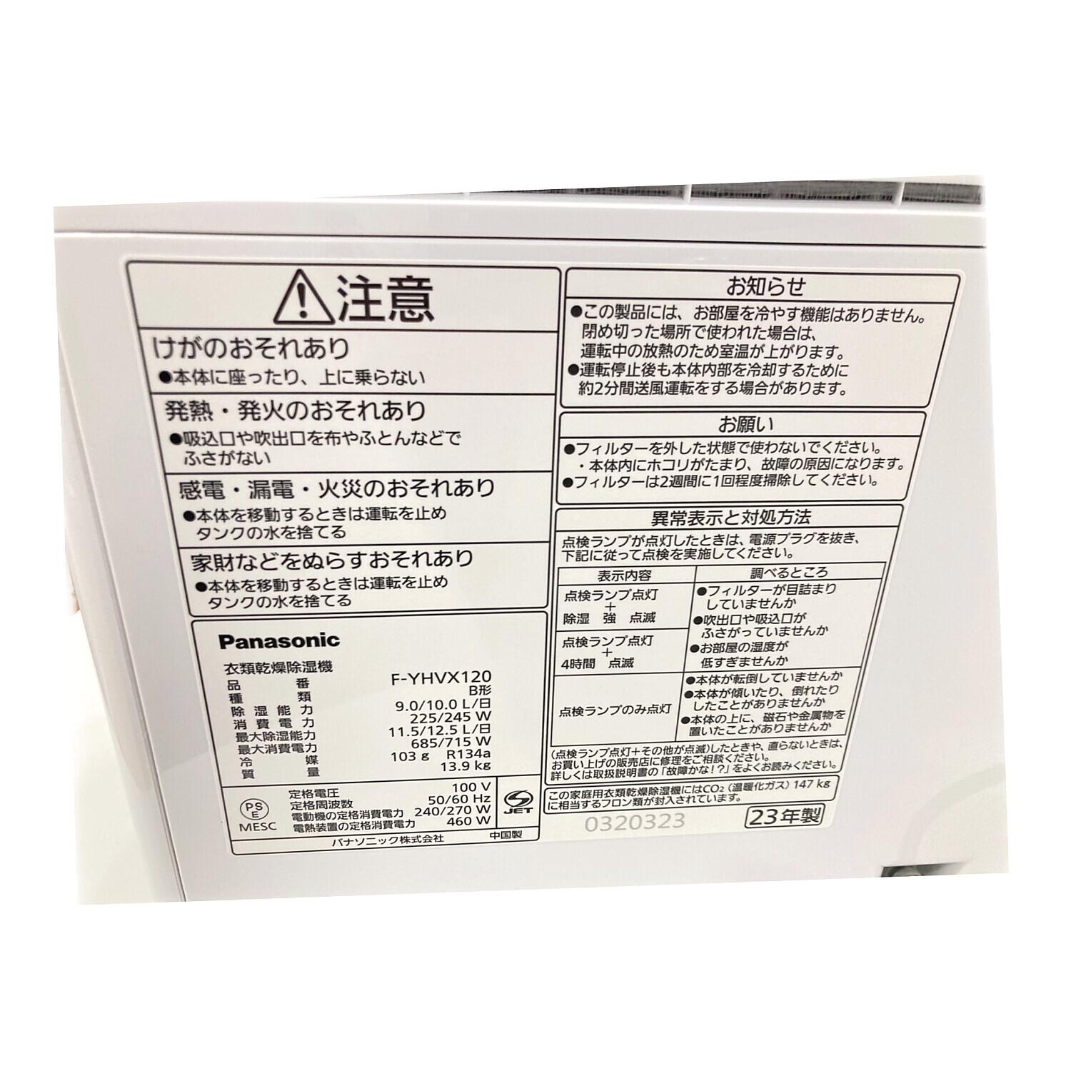 Panasonic (パナソニック) 衣類乾燥除湿機 F-YHVX120 2023年製 未使用品 154