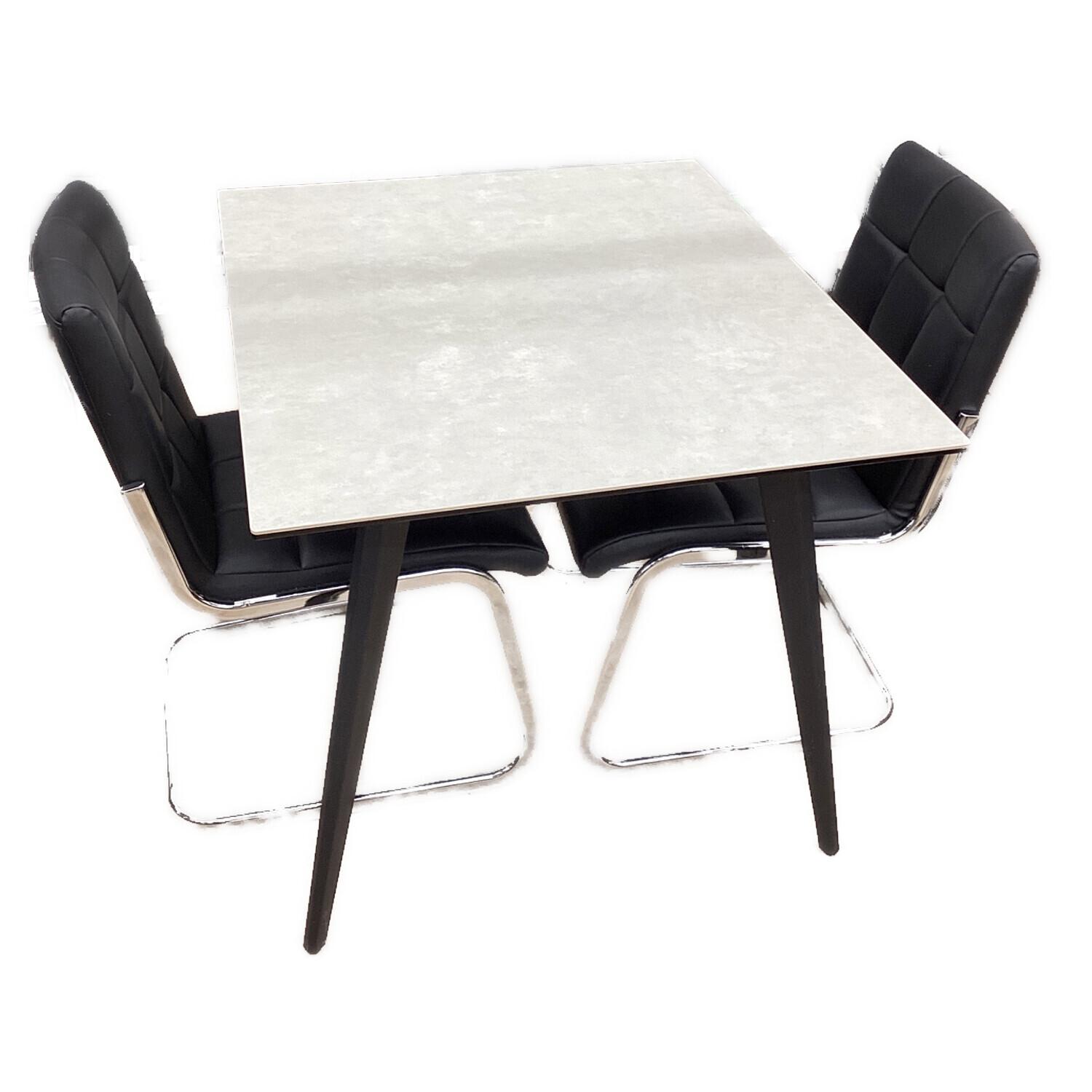 セラミックダイニング3点セット ベージュ×ブラック