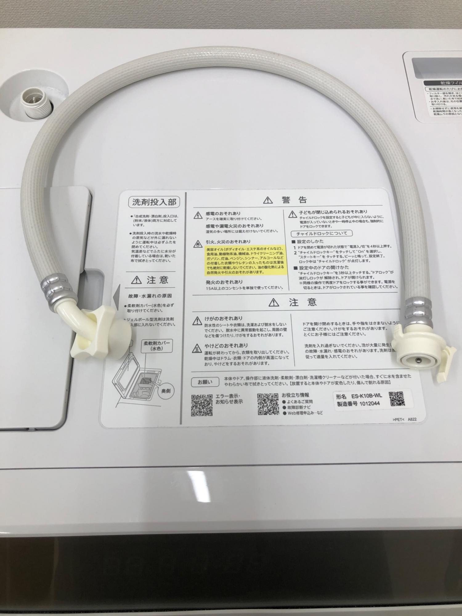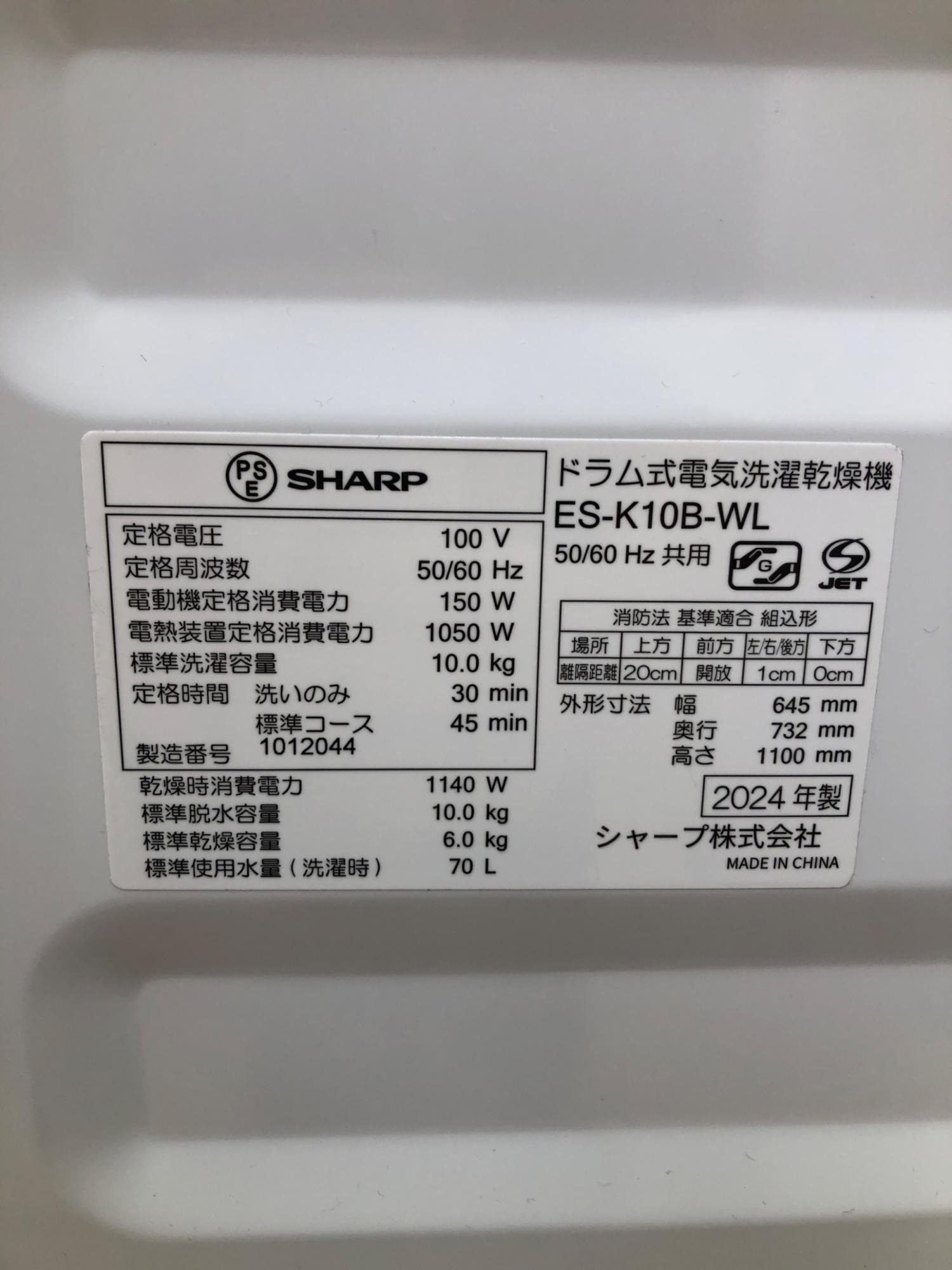 SHARP (シャープ) ドラム式洗濯乾燥機 10.0kg 6.0kg ES-K10B 2024年製 クリーニング済 50Hz/60Hz