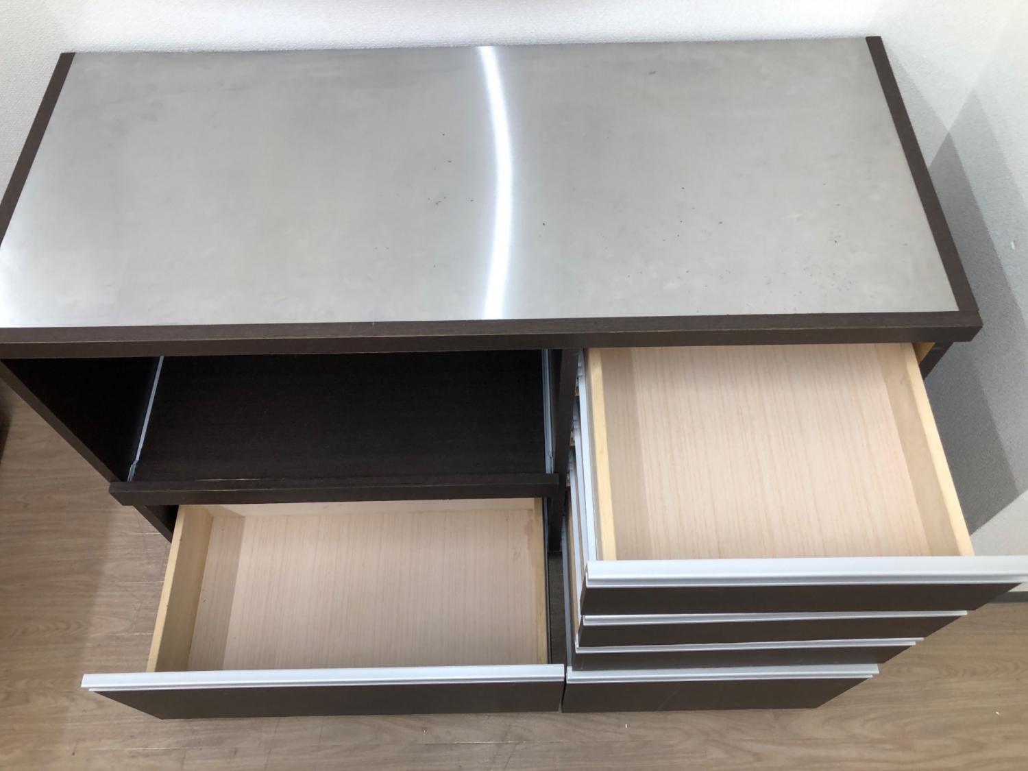 キッチンカウンター ダークブラウン×シルバー ステンレストップ
