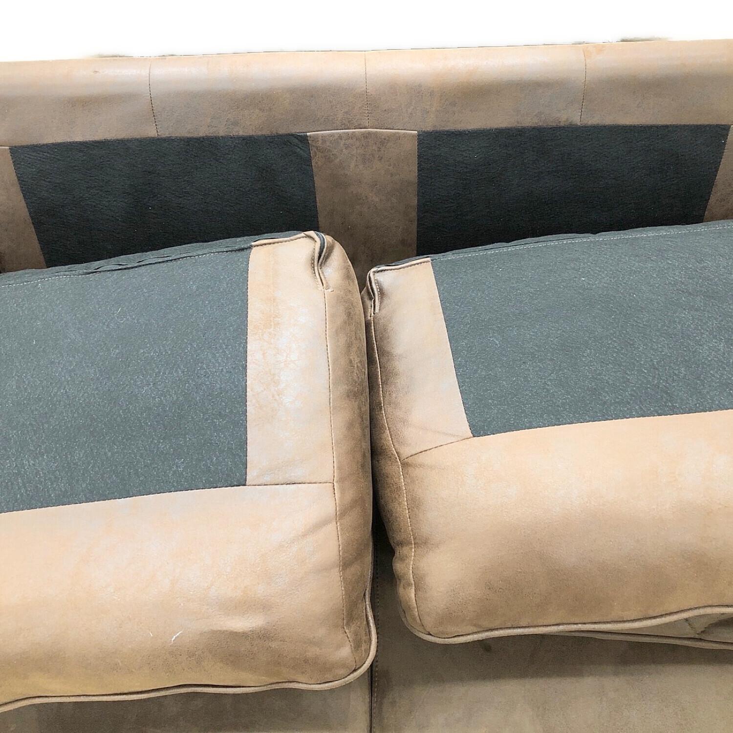 2人掛けソファー ブラウン クッション付 レザーテックス