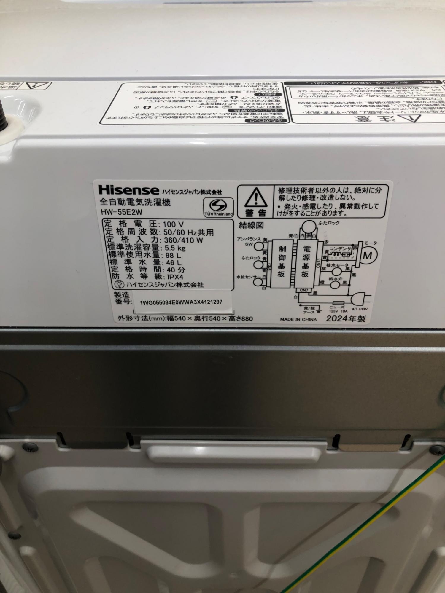 Hisense (ハイセンス) 全自動洗濯機 5.5kg HW-55E2W 2024年製 クリーニング済 50Hz/60Hz