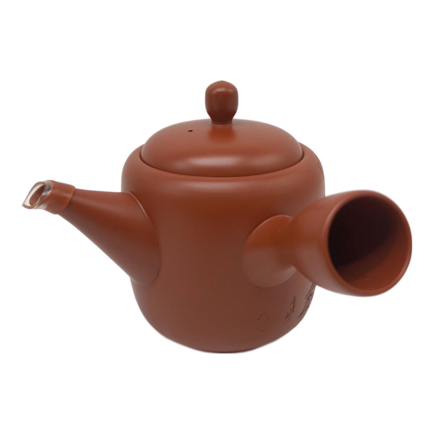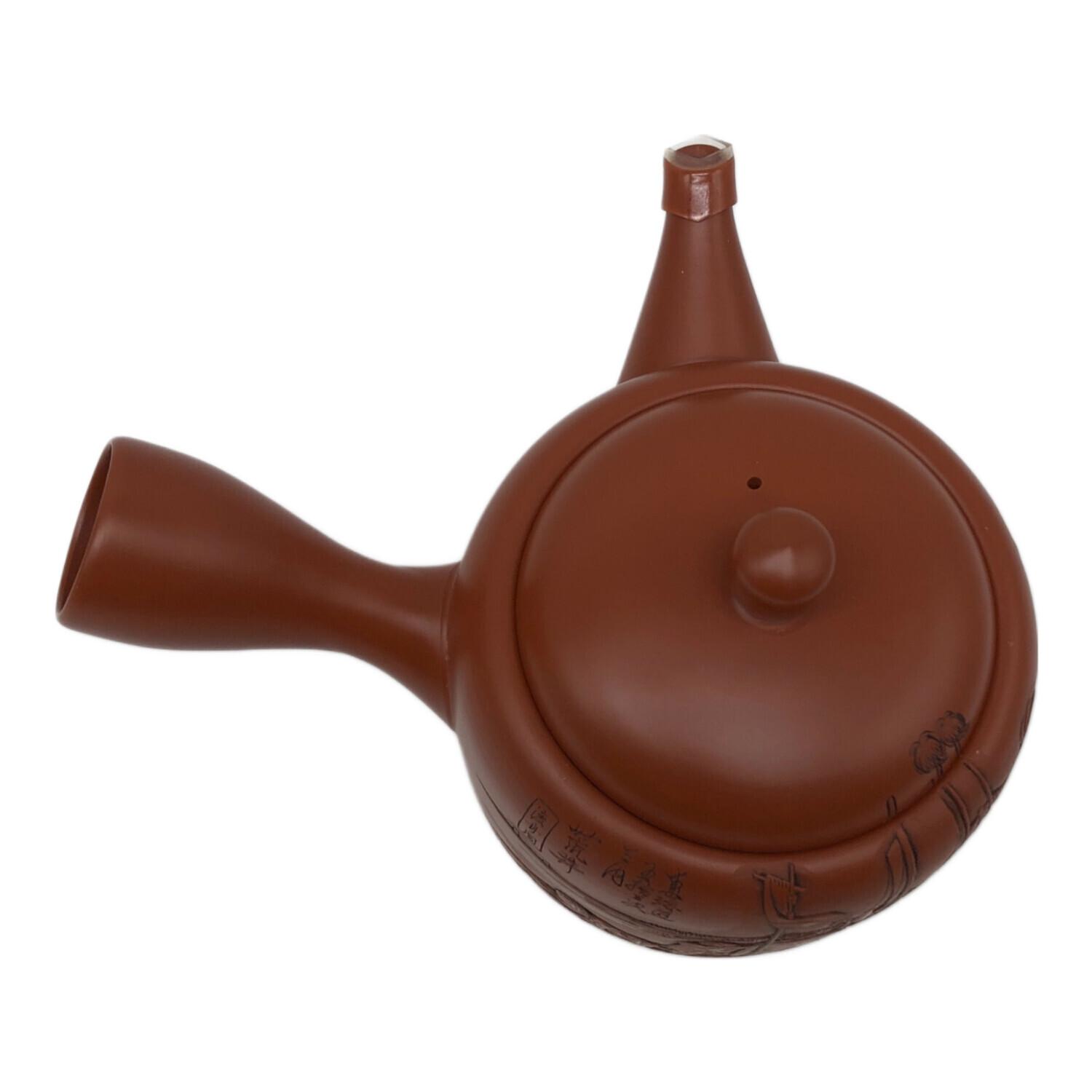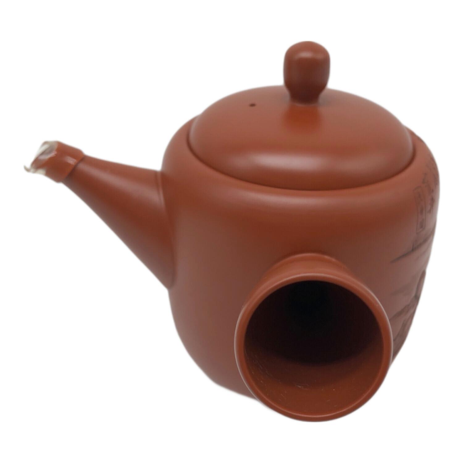 常滑焼 (トコナメヤキ) 朱泥彫込急須 歌川広重【東海道五十三次】「荒井」 渡舟図 伝統工藝士 吉川雪堂作