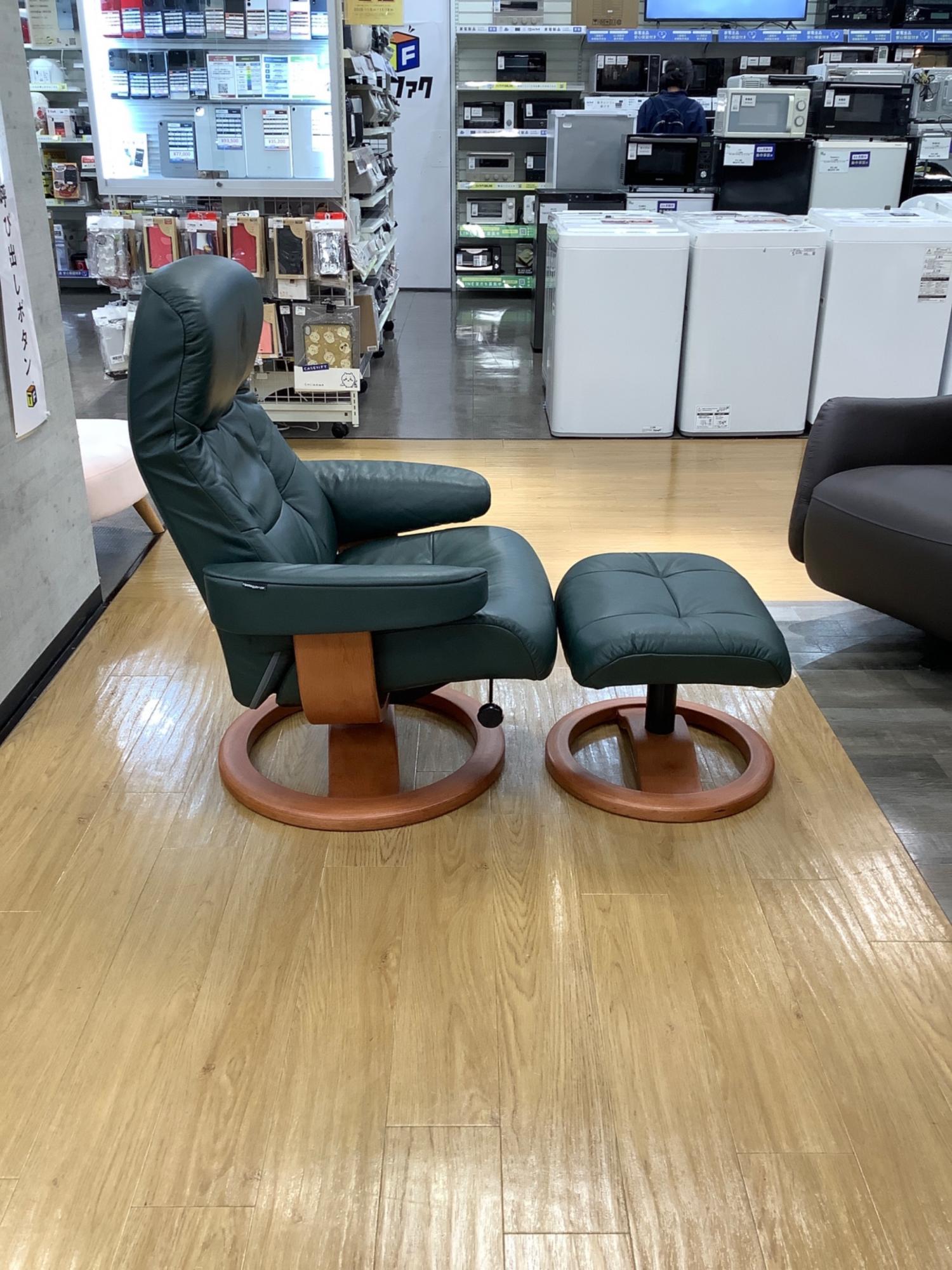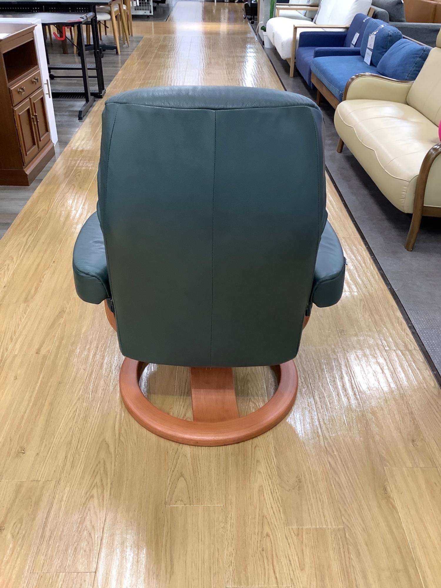 HJELLEGJERDE (イエリアーダ) パーソナルチェア グリーン オットマン付 レザー フィヨルド215