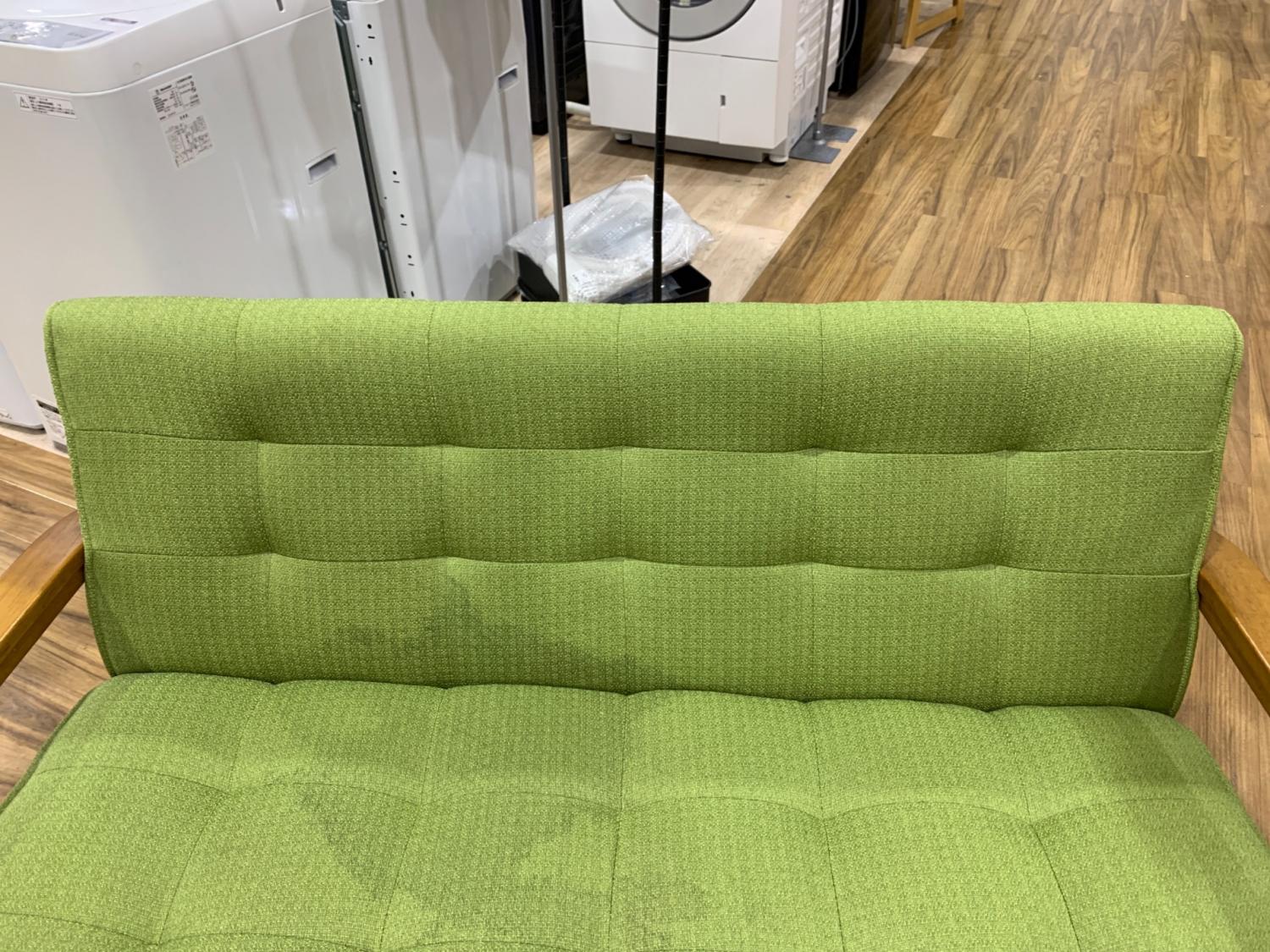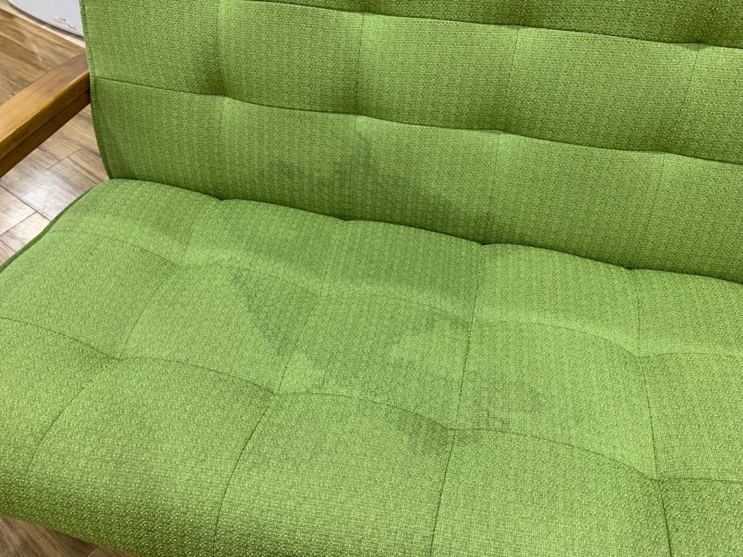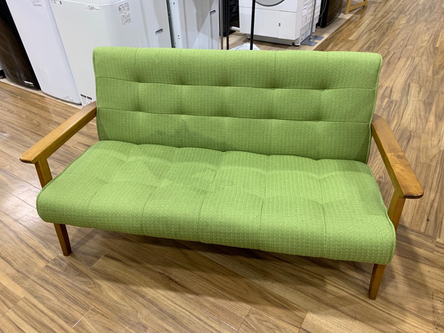 ウッドアーム2人掛けソファー ブラウン×グリーン