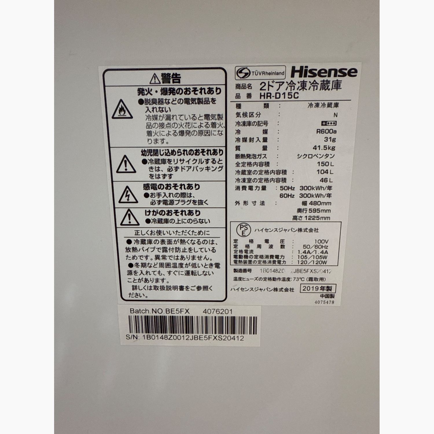 2ドア冷蔵庫 210 HR-D15C