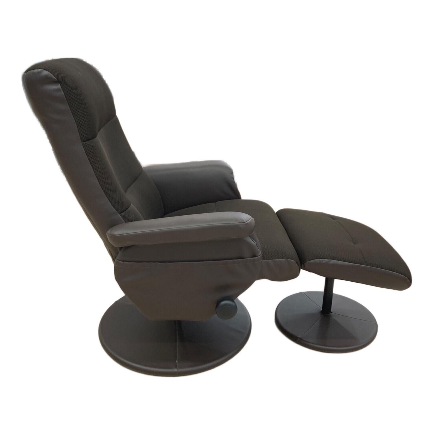 リクライニングチェアー ブラウン オットマン付 合皮
