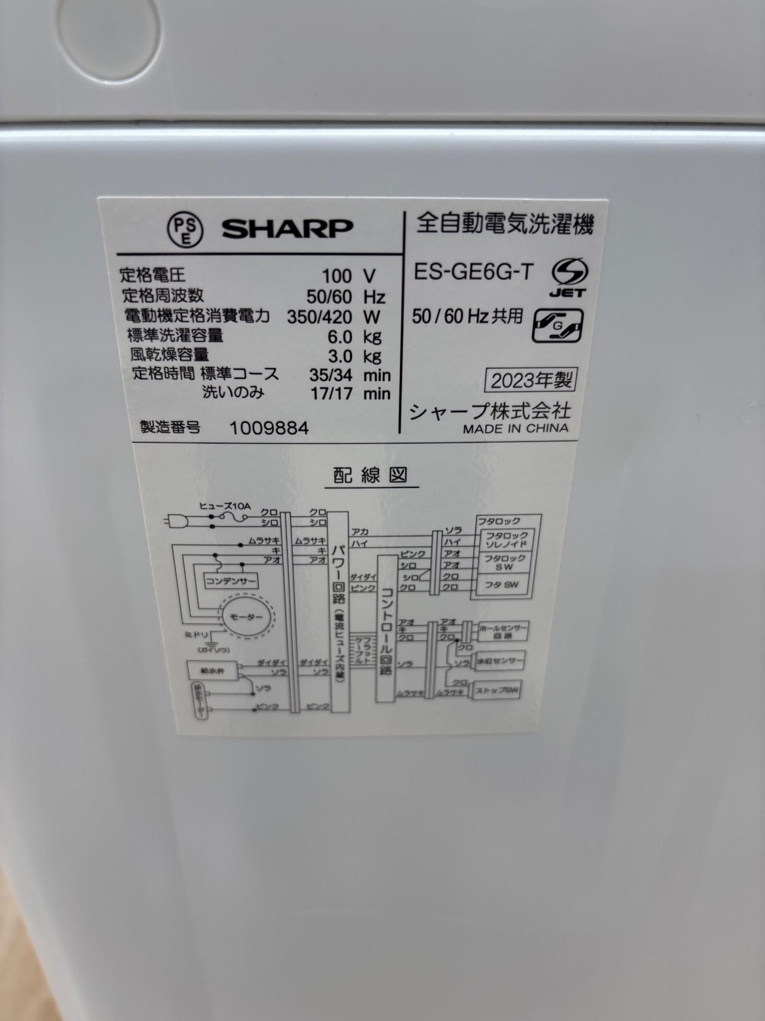SHARP (シャープ) 全自動洗濯機 ES-GE6G 2023年製 300