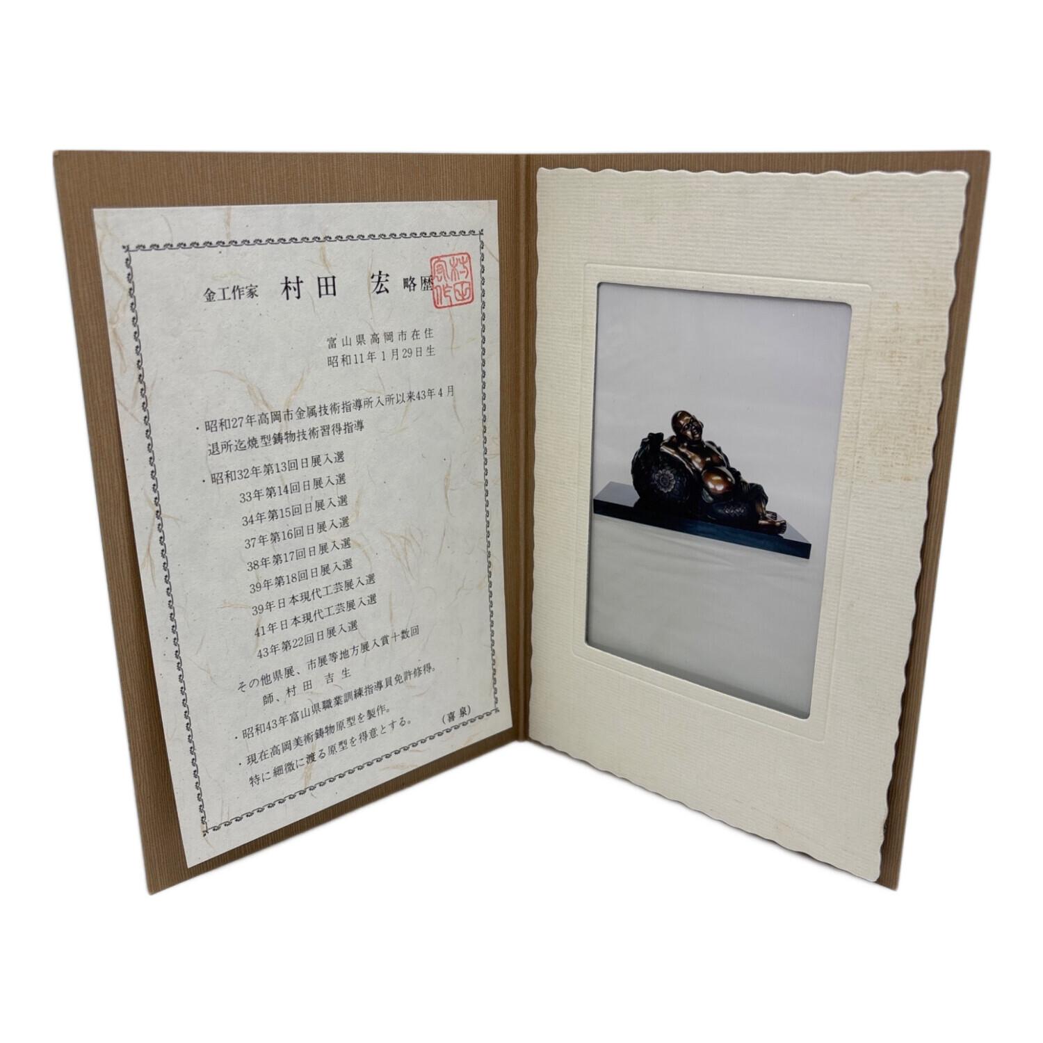 置物 村田 宏 作 高岡銅器 蝋型鋳銅 夢布袋程度A