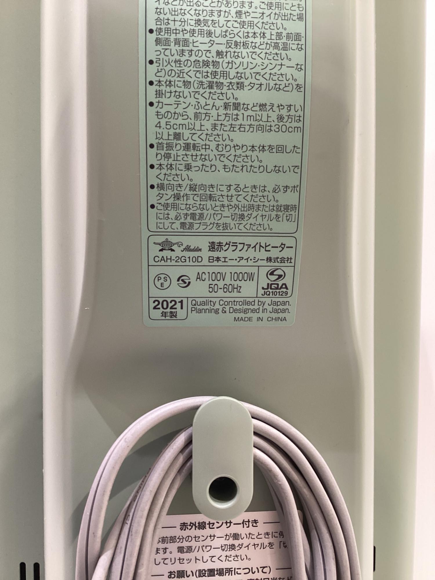 Aladdin (アラジン) 遠赤グラファイトヒーター CAH-2G10D 2021年製