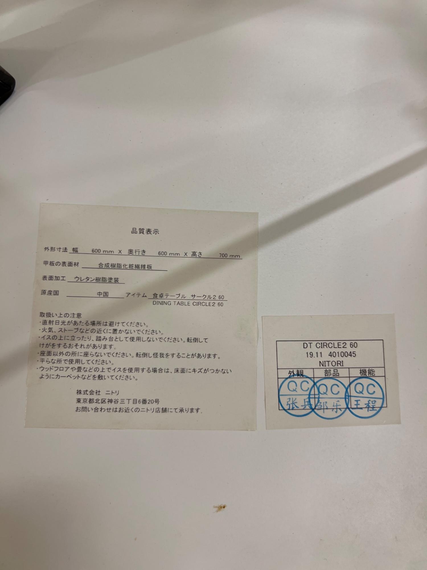 ニトリ ダイニングテーブル ホワイト 222 ラウンド サークル2 60 幅:約60㎝/高さ:約70cm