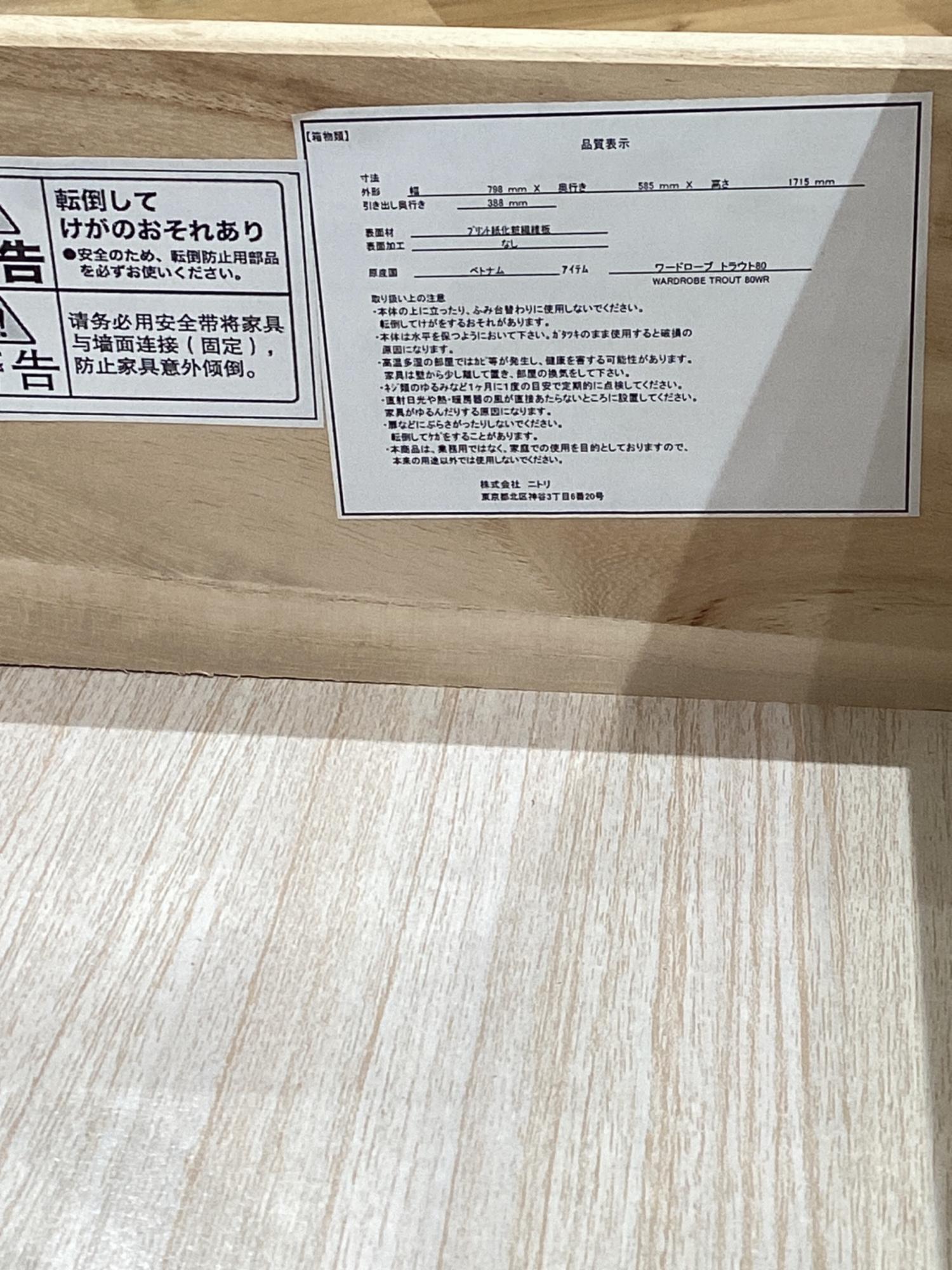 ニトリ ワードローブ ホワイト トラウト80