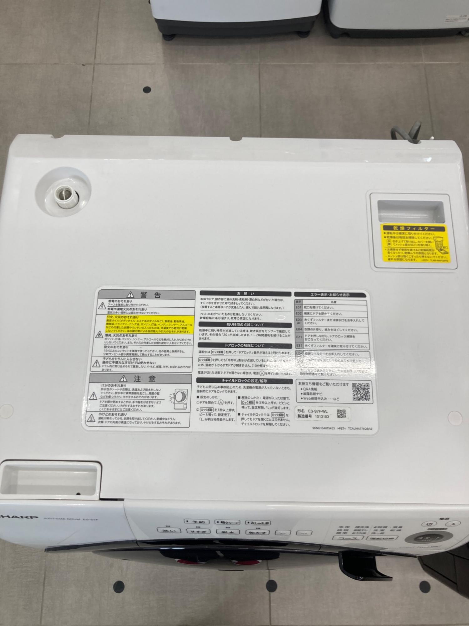 SHARP (シャープ) ドラム式洗濯乾燥機 ES-S7F-WL 2021年製 キズ有