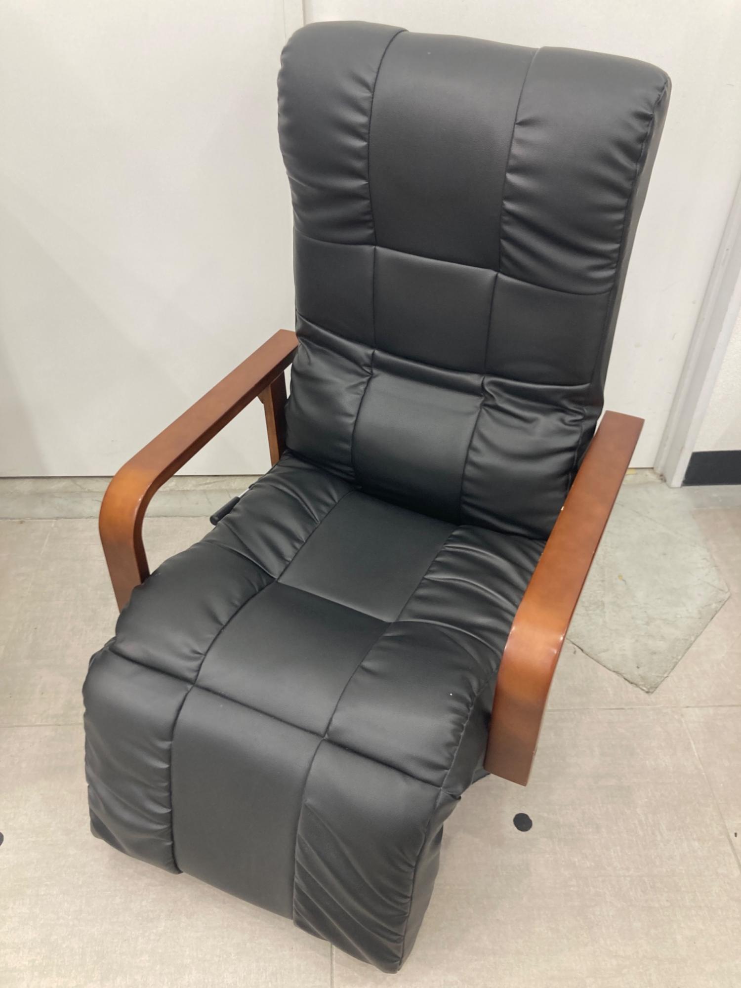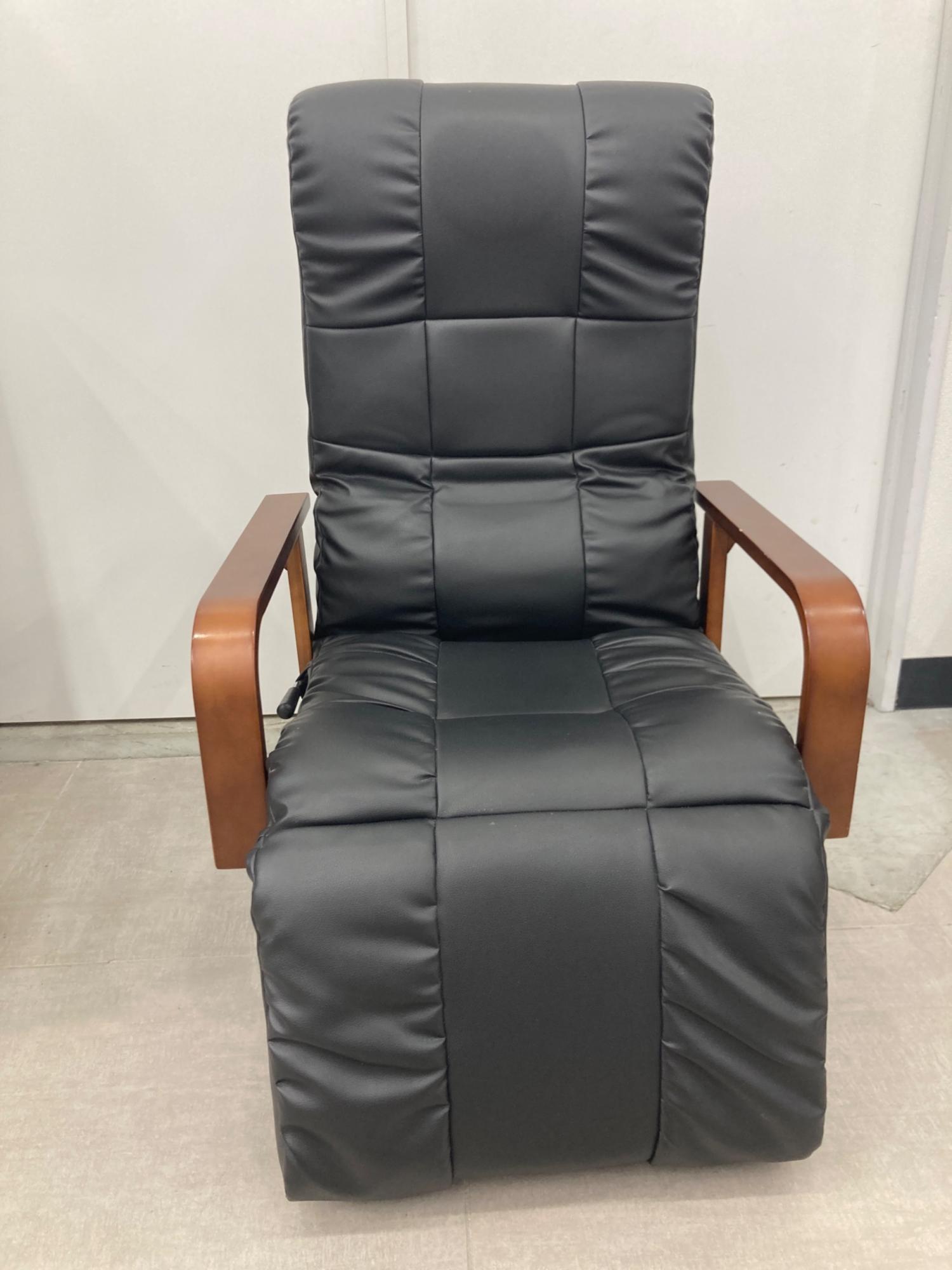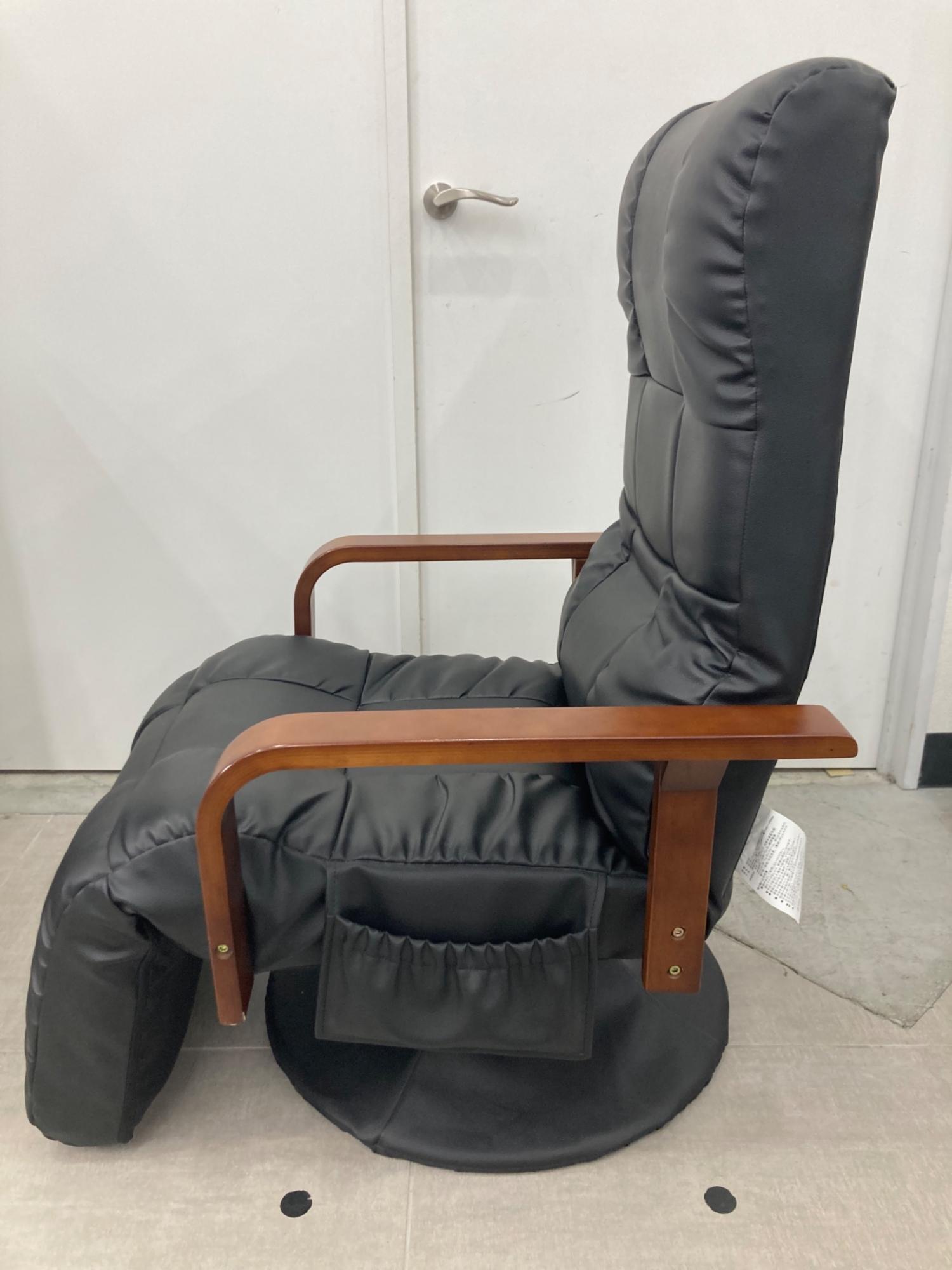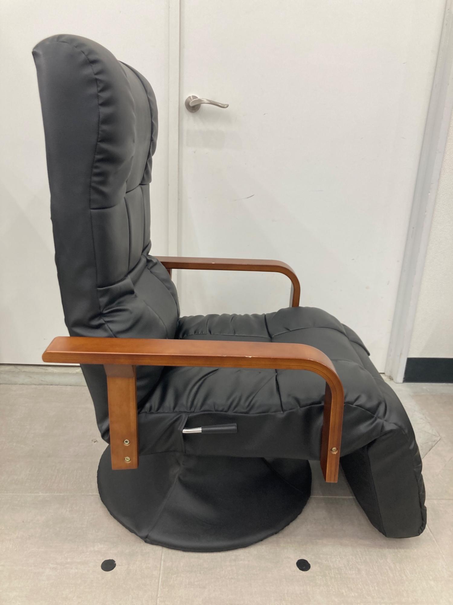はぴねすくらぶ リクライニングチェアー ブラック×ブラウン もこもこフットレス付回転チェアDX