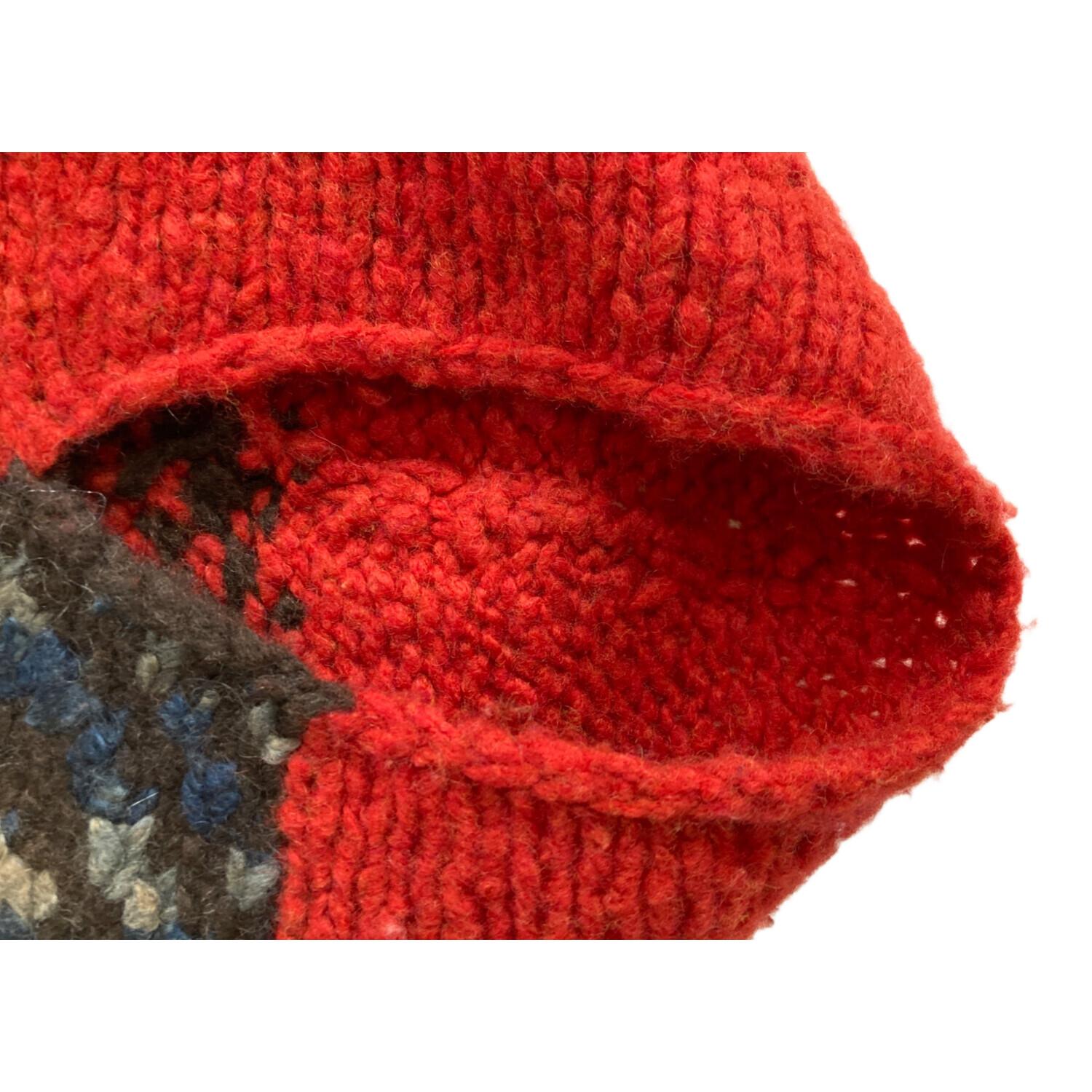 hand knitted 手編み カシミヤ ブレンド ウール ハンド ニット ストール風ベストポンチョ レディース SIZE Free レッド