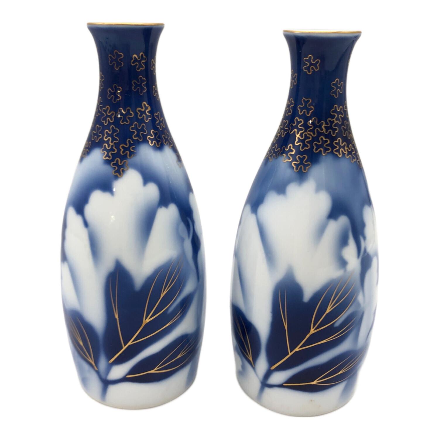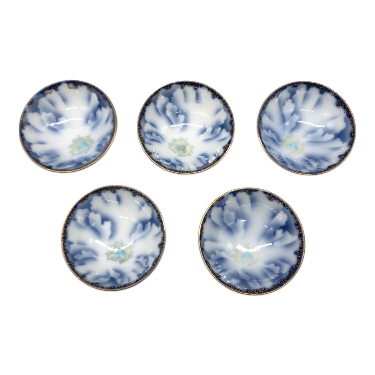 深川製磁 (フカガワセイジ) 牡丹金ミル 酒器揃 徳利2 お猪口5