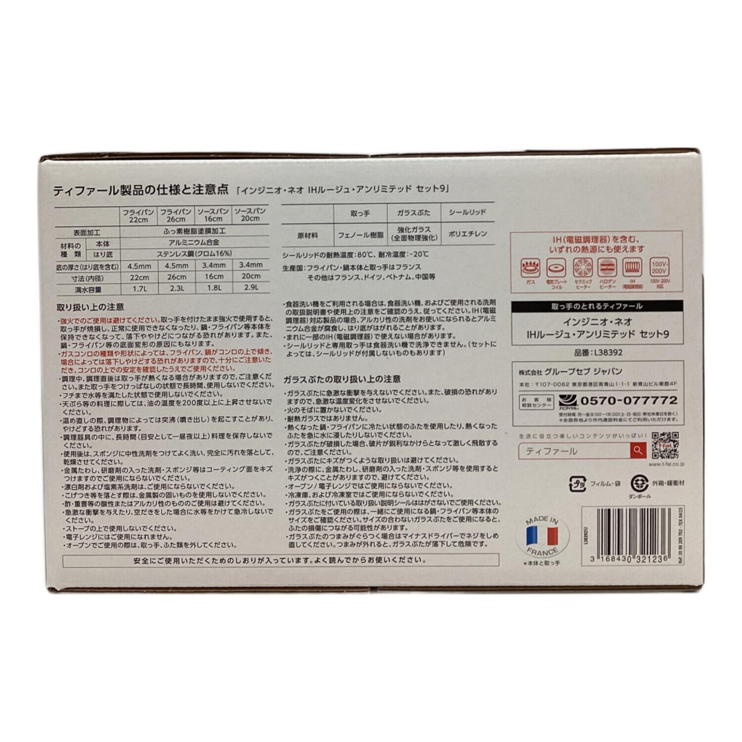 T-Fal (ティファール) フライパン 9点セット L38392