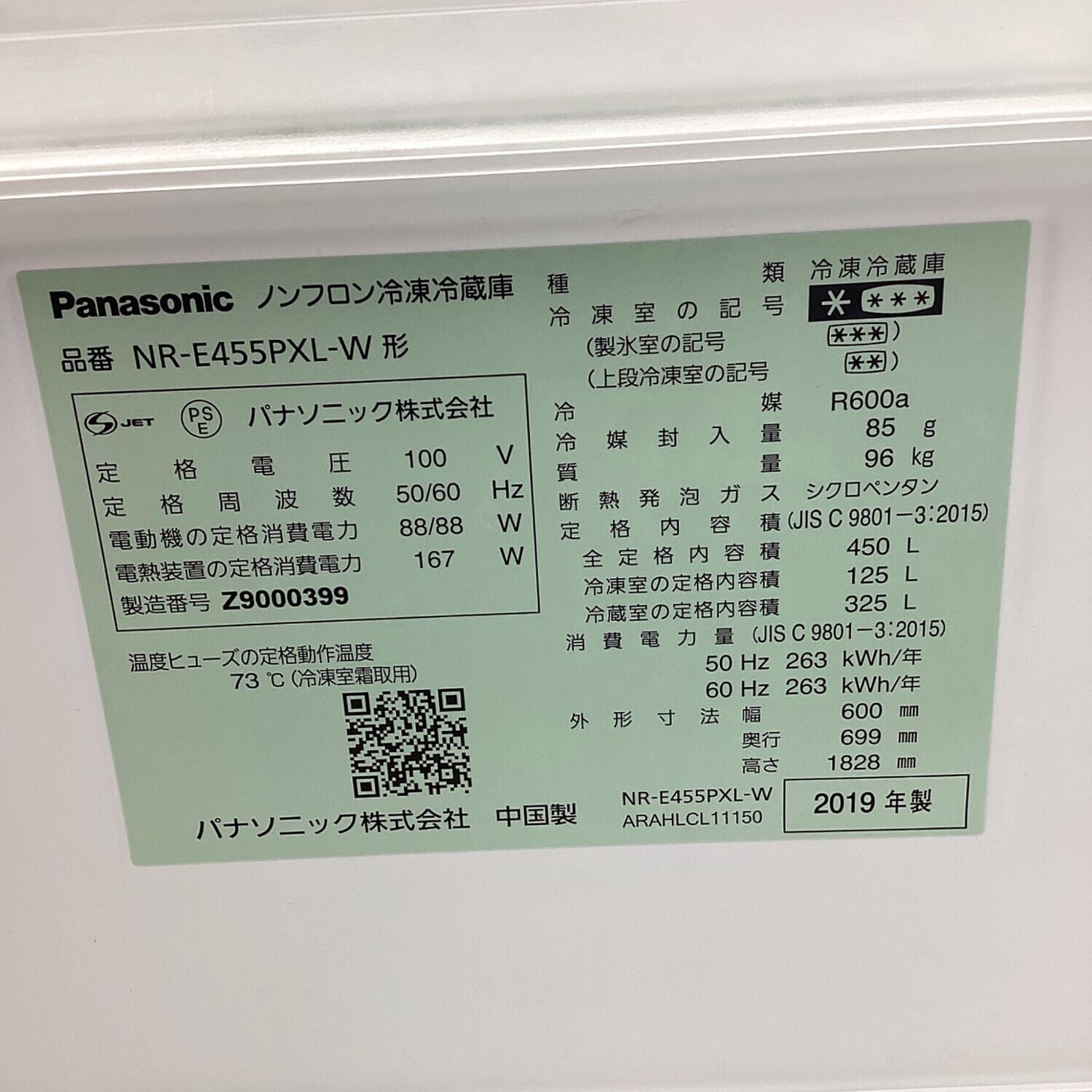 Panasonic (パナソニック) 5ドア冷蔵庫 200 NR-E455PXL-W 2019年製 450L クリーニング済