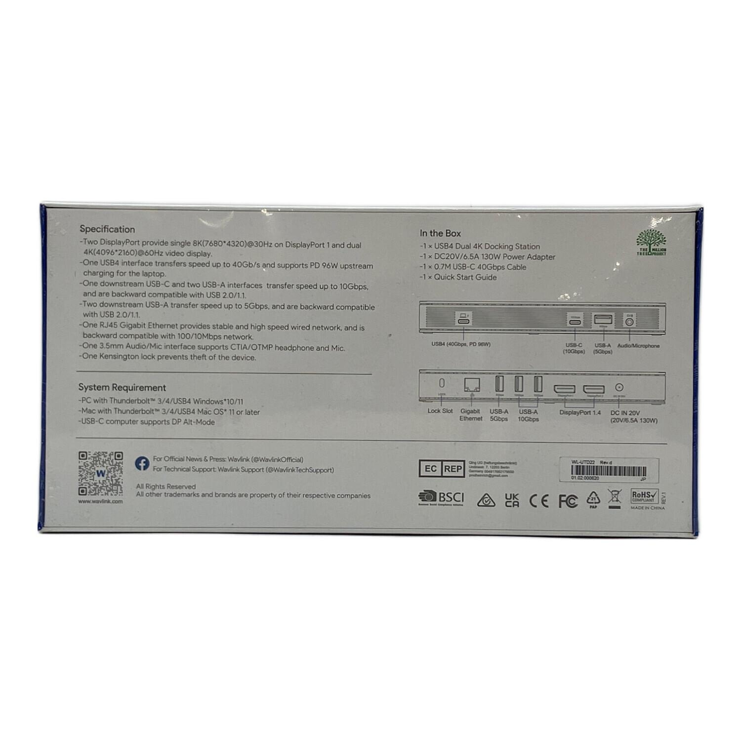 WAVLINK (ウェーブリンク) ドッキングステーション WL-UTD22 USB4 Dual 4K Docking Station