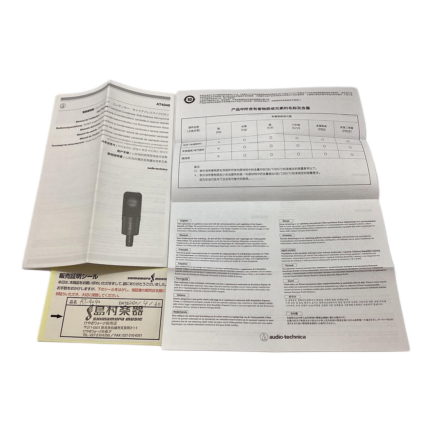 audio-technica (オーディオテクニカ) コンデンサーマイク AT4040
