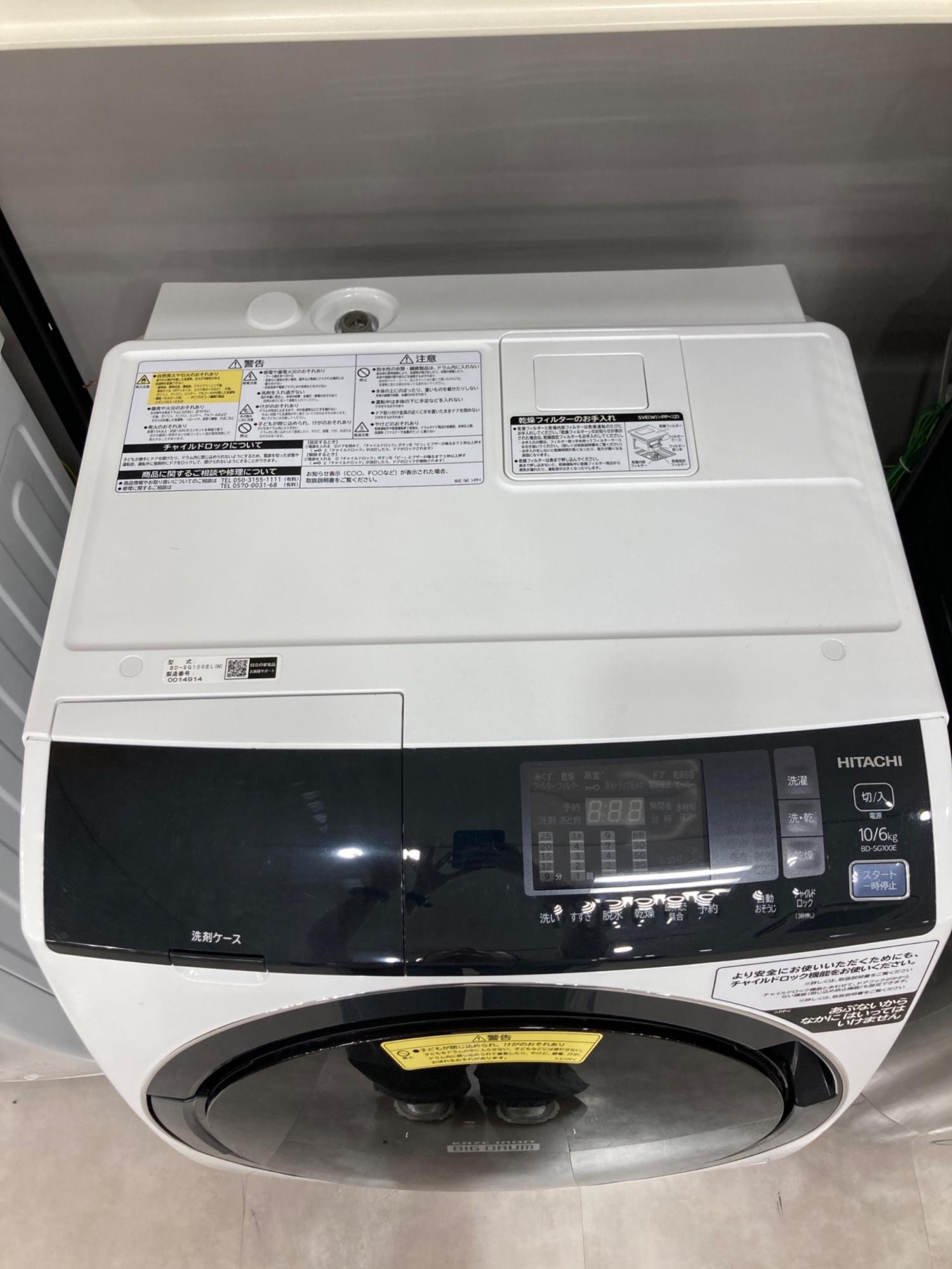 HITACHI (ヒタチ) ドラム式洗濯乾燥機 固定ボルト有 114 10.0kg 6.0Kg BD-SG100EL 2020 クリーニング済 50Hz/60Hz