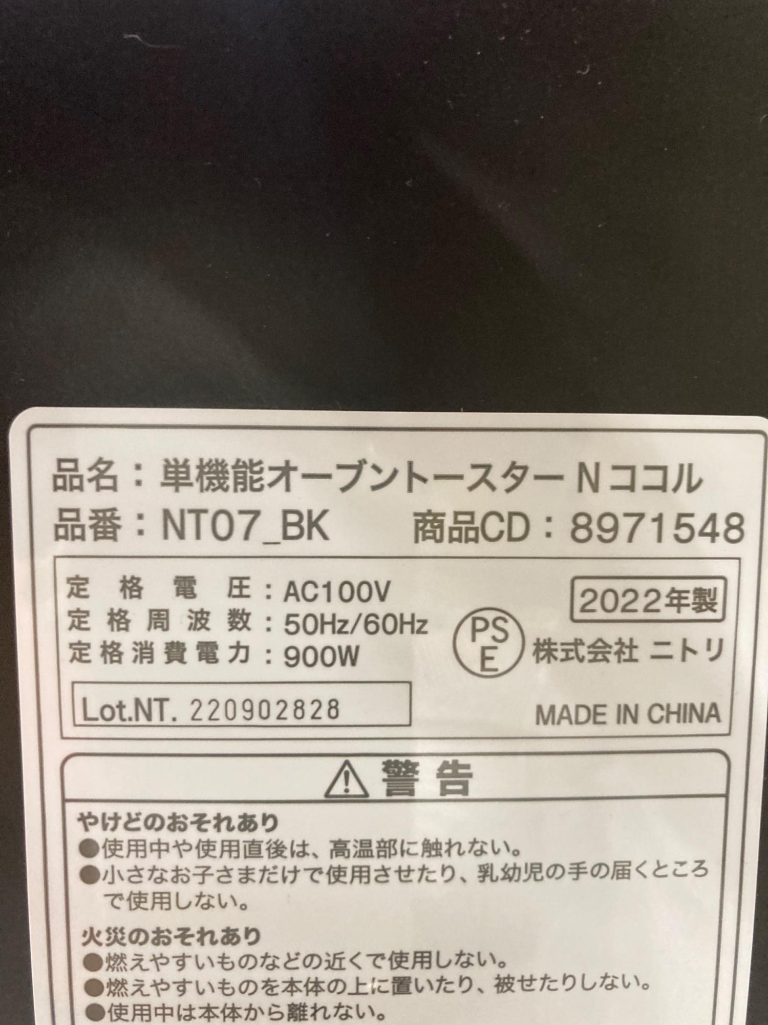 ニトリ オーブントースター NT07 BK 2022年製