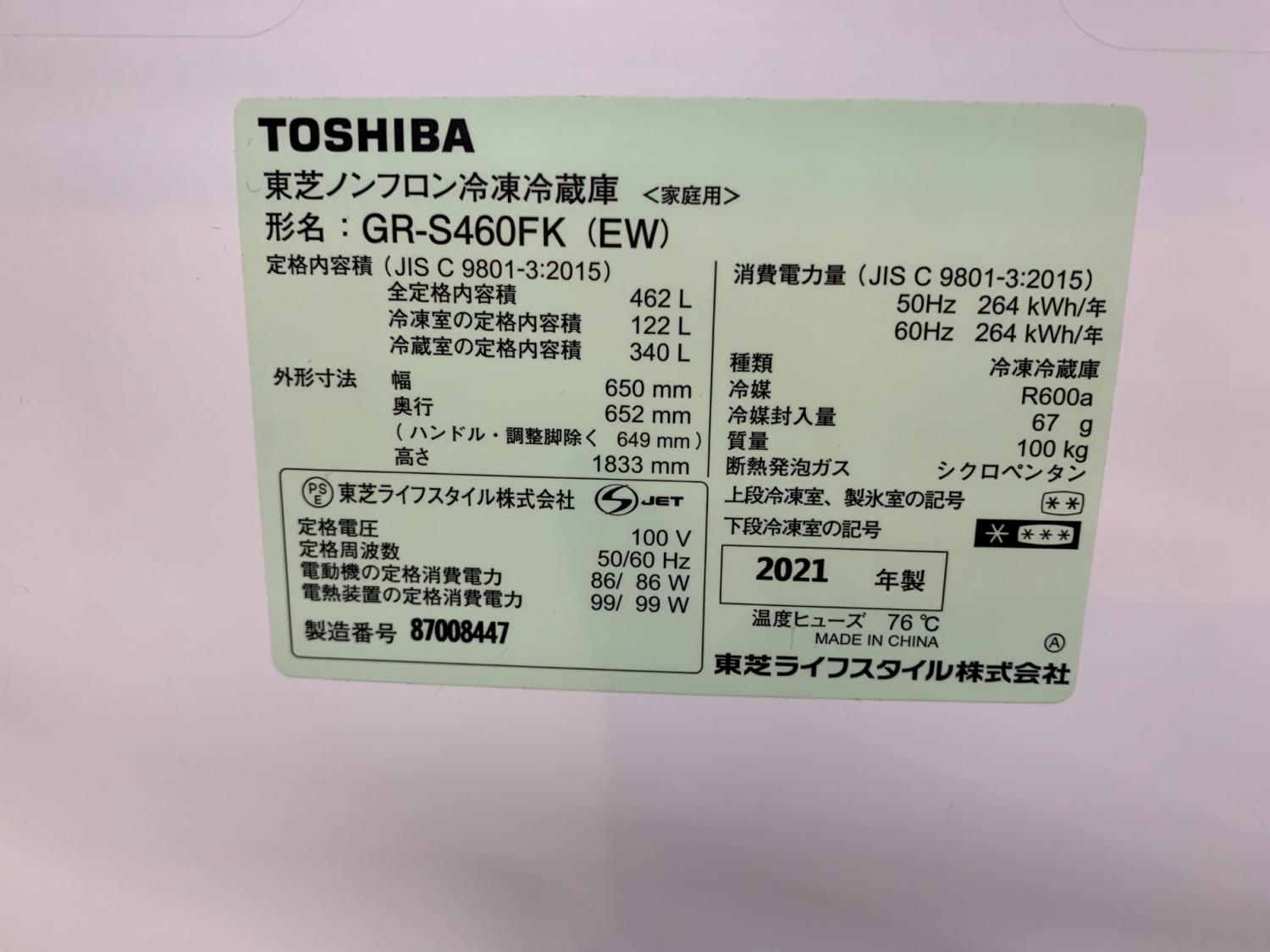 TOSHIBA (トウシバ) 6ドア冷蔵庫 GR-S460FK 2021年製 462L クリーニング済