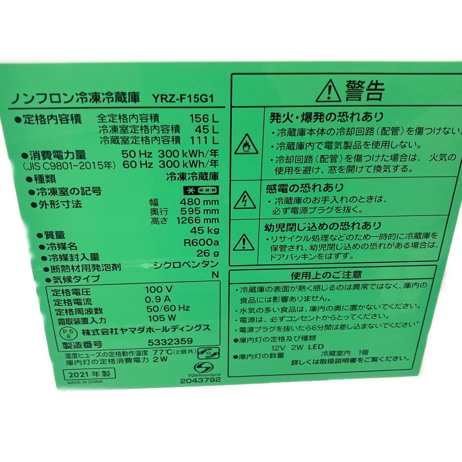 YAMADA (ヤマダオリジナル) 2ドア冷蔵庫 YRZ-F15G1 2021年製 156L クリーニング済