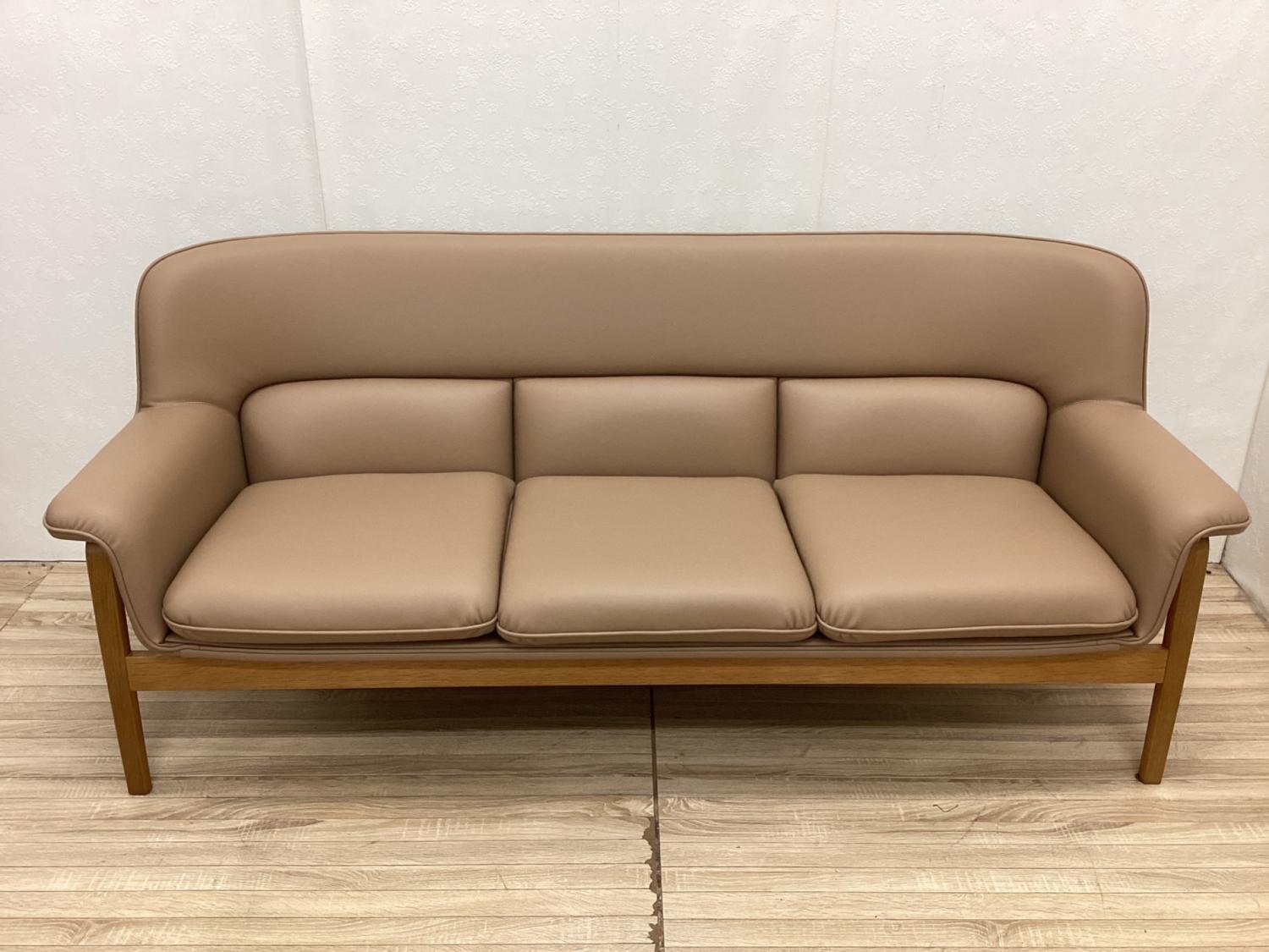 天童木工 (テンドウモッコウ) 3人掛けソファー ナチュラル×ベージュ 3人掛け T-5452NA-ST 合皮 チェントロ