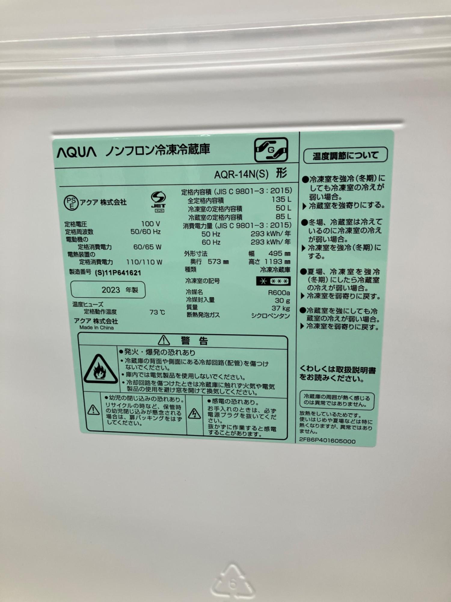 AQUA (アクア) 2ドア冷蔵庫 AQR-14N 2023年製 135L キズ・凹みヨ有