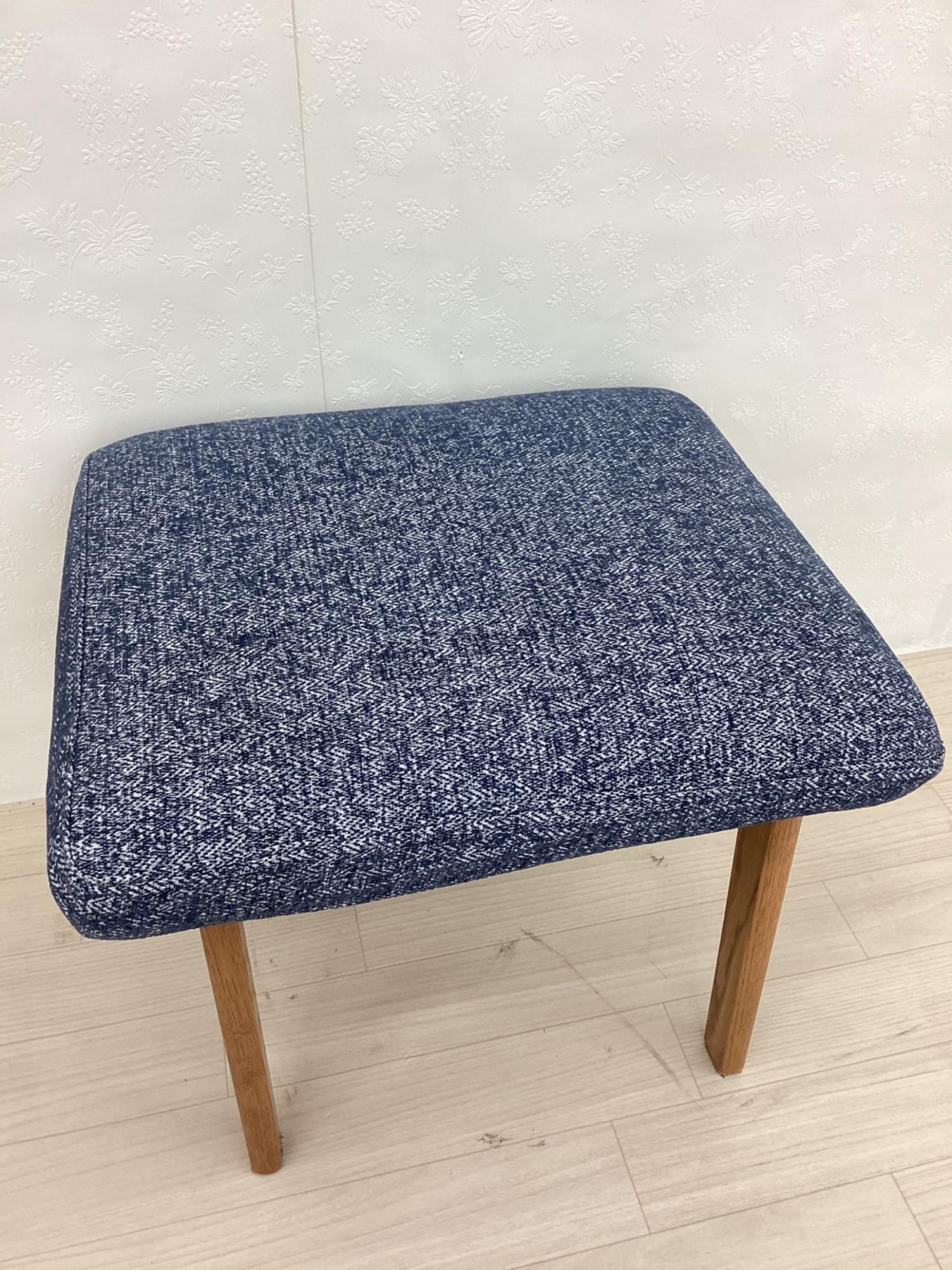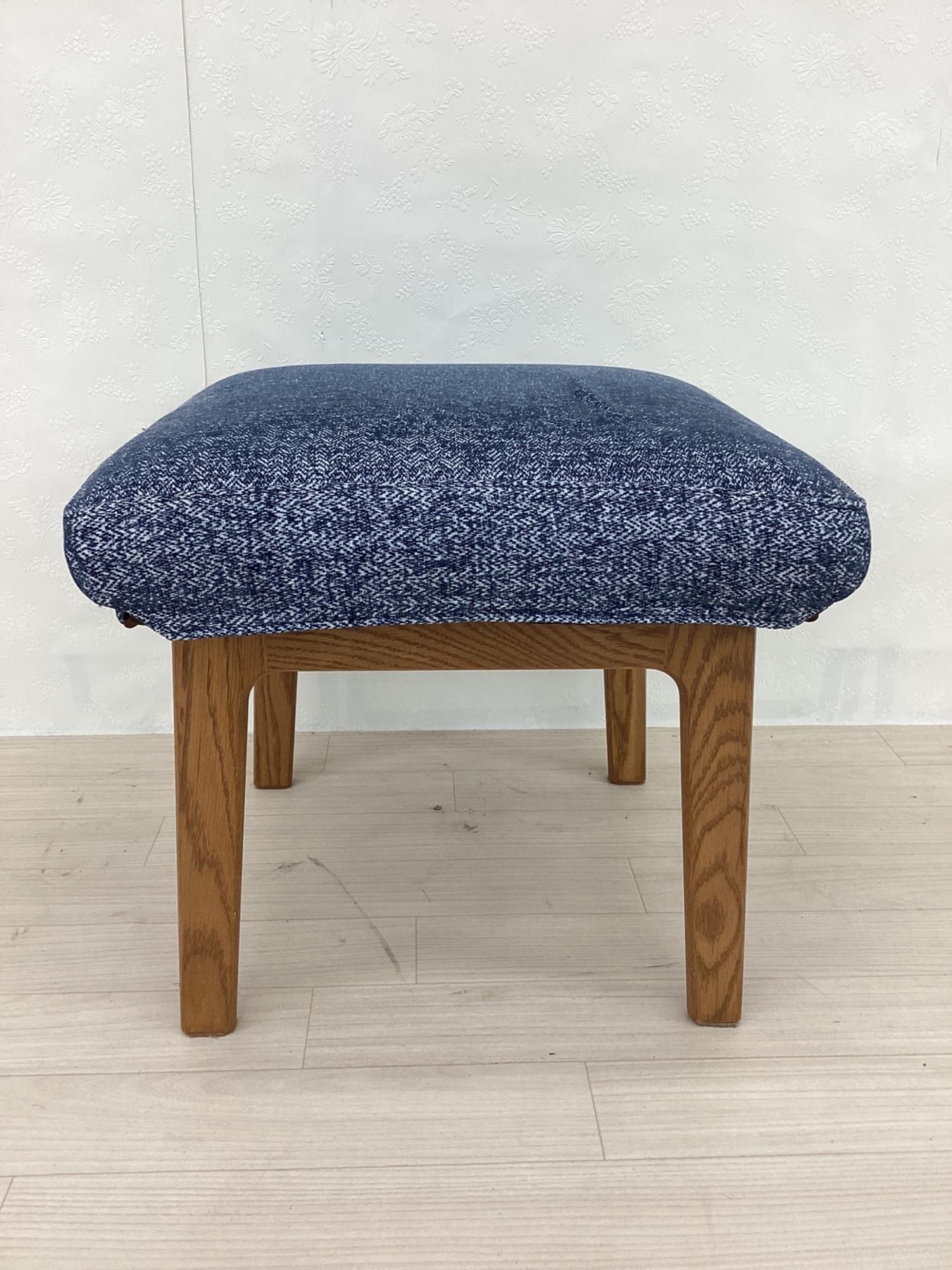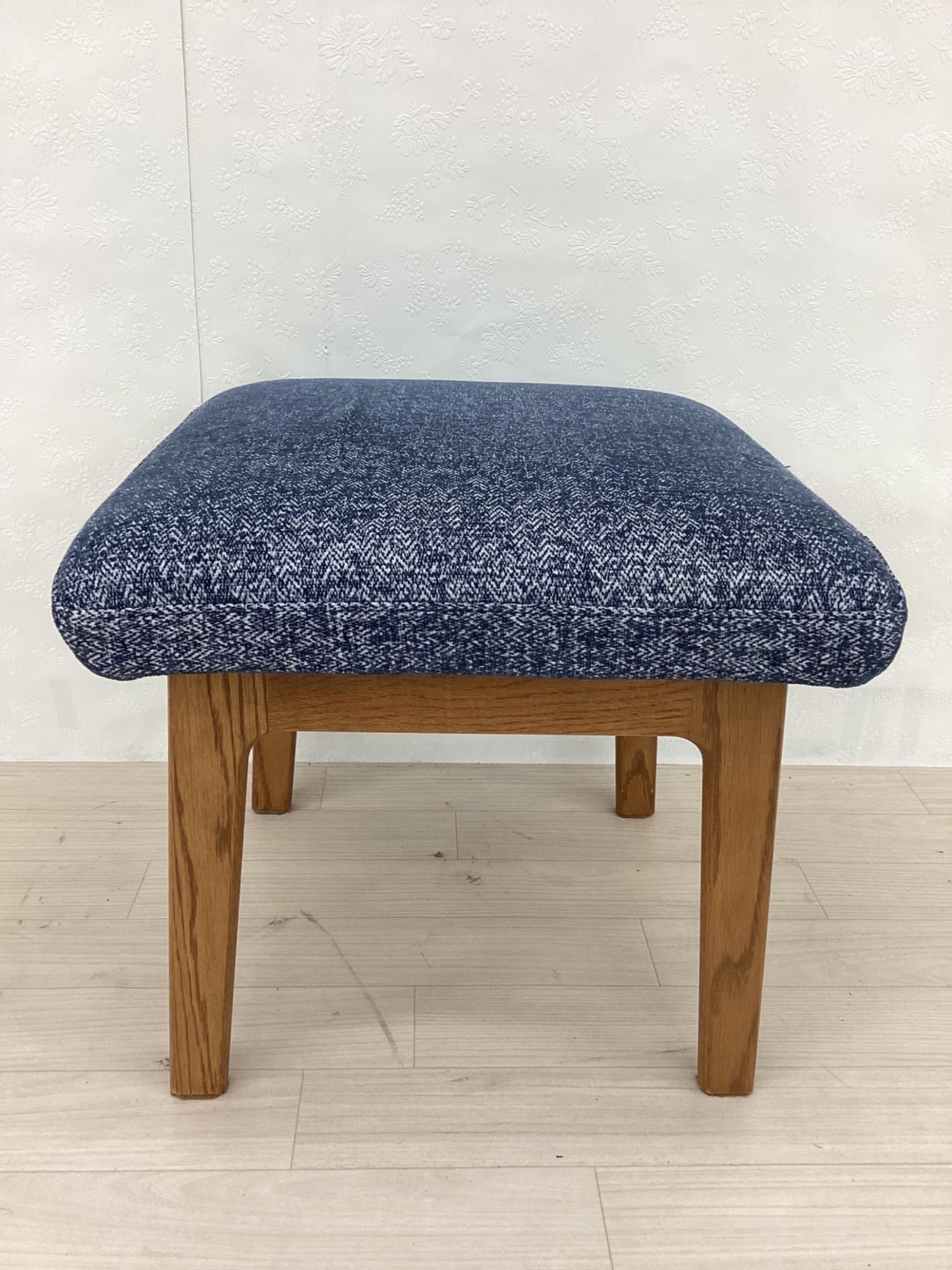 LIVING HOUSE (リビングハウス) スツール ブルー×ブラウン カバーリング ファブリック×オーク材 MOCOA